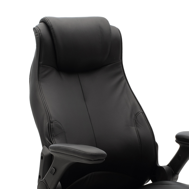 * Καμπύλο μπράτσο που ακολουθεί την κλίση των χεριών, ενισχυμένο με τεχνόδερμα για μεγαλύτερη άνεση. Το μπράτσο μπορεί να ανακλιθεί όρθιο, ώστε να πλησιάζει περισσότερο το γραφείο όταν δε χρησιμοποιείται.