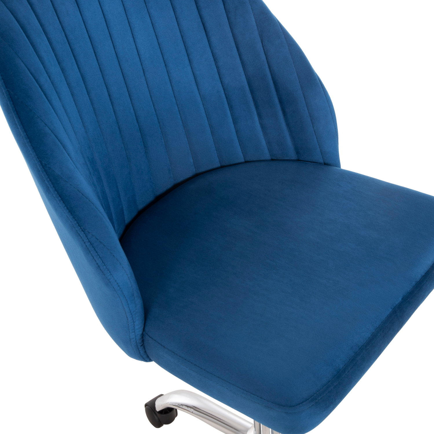 H HOLLIS είναι μια όμορφη καρέκλα γραφείου χωρίς μπράτσα. Η πλάτη είναι μεσαίου ύψους με καπιτονέ τεχνοτροπία και κυρτό σχεδιασμό για άνεση κατά την χρήση και υποστηρίζει ολόκληρο τον κορμό σας, ενώ είναι επενδυμένη με υψηλής ποιότητας βελούδινο ύφασμα σε ΜΠΛΕ χρώμα, όπως επίσης και το φαρδύ και αναπαυτικό κάθισμα. Η βάση είναι χρωμιωμένη με 5 ακτίνες και μαύρα ροδάκια.