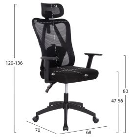 Η καρέκλα γραφείου MEXER σε ΜΑΥΡΟ χρώμα με ΜΑΥΡΗ μεταλλική βάση, θα σας συναρπάσει. Διαθέτει ψηλή ανατομική πλάτη με σκελετό από υλικό nylon και mesh ύφασμα, αναπαυτικό κάθισμα με mesh ύφασμα, ανεξάρτητα μπράτσα από υλικό nylon και μηχανισμό ανάρτησης με ρύθμιση ανάκλισης. Αυτό που την κάνει όμως να ξεχωρίζει, είναι το γεγονός ότι διαθέτει ανεξάρτητο προσκέφαλο με ξεχωριστό σκελετό nylon και επένδυση από mesh ύφασμα.
