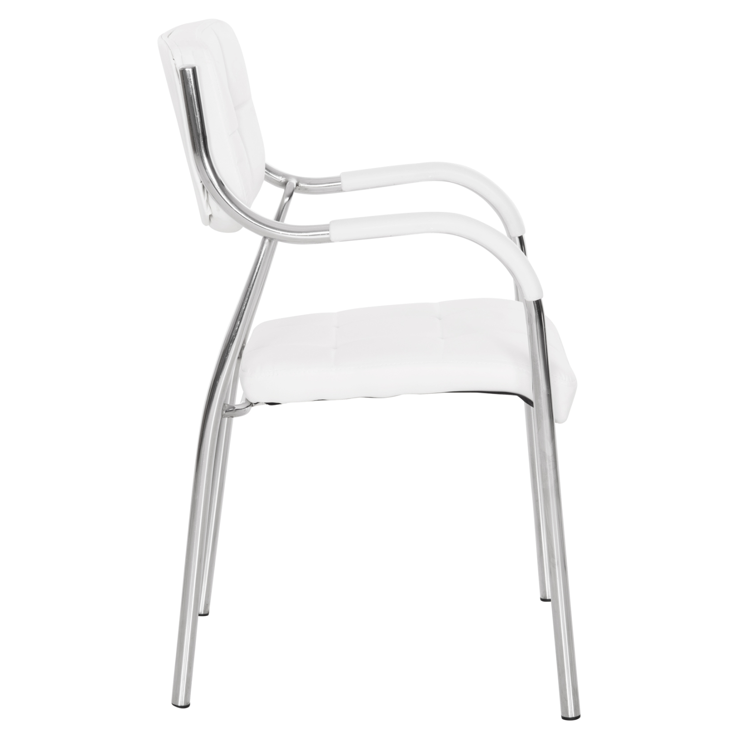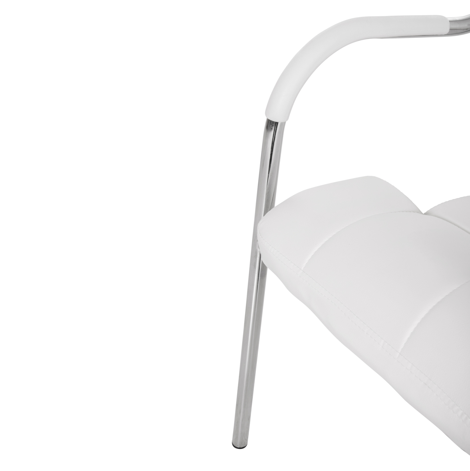 Κάντε τους επισκέπτες σας να αισθανθούν άνετα με την καρέκλα OBERON. Πρόκειται για μια καρέκλα γραφείου συνεργασίας σε λευκό χρώμα και λιτό σχεδιασμό αλλά σίγουρα όμορφο. Είναι χρωμιωμένη ενώ το κάθισμα και η πλάτη είναι ανεξάρτητα μεταξύ τους. Το μπροστά μέρος του καθίσματος έχει μια ελαφριά κλίση για να είναι πιο ευχάριστη και άνετη στην χρήση, ενώ η επένδυσή της είναι σε στυλ τετραγωνισμένου καπιτονέ, τόσο στο κάθισμα, όσο και στην πλάτη. Ο σκελετός της καρέκλας έχει όμορφες καμπύλες ενώ τα μπράτσα έχουν επένδυση πολυκαρβονική για πιο ευχάριστη υφή.