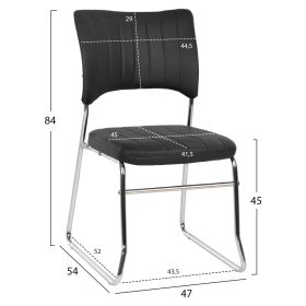 Καρέκλα επισκέπτου, από μαύρο PU και σκελετό από χρωμιομένο ατσάλι για ύψιστη ασφάλεια, σταθερότητα και αντοχή.
