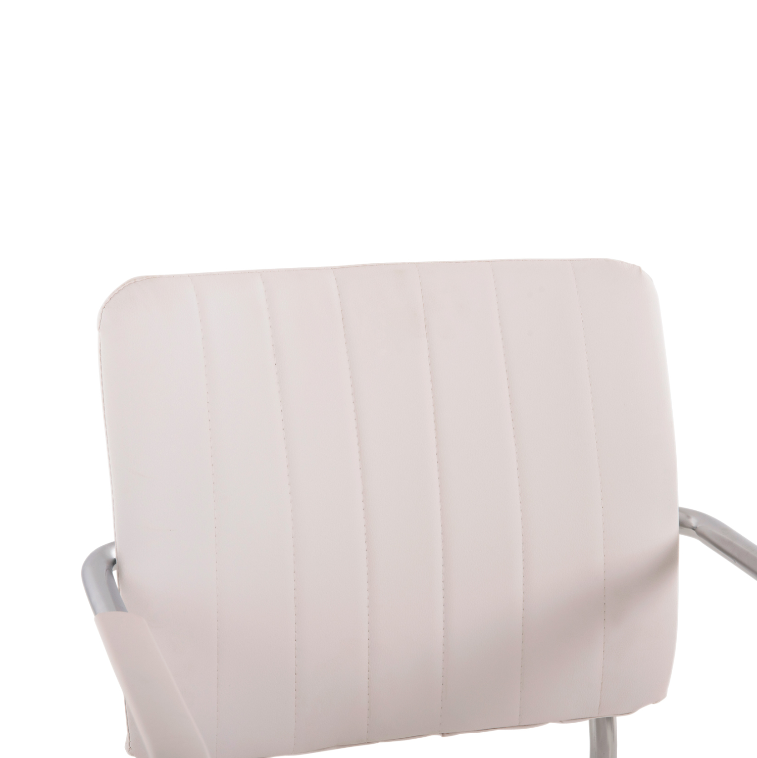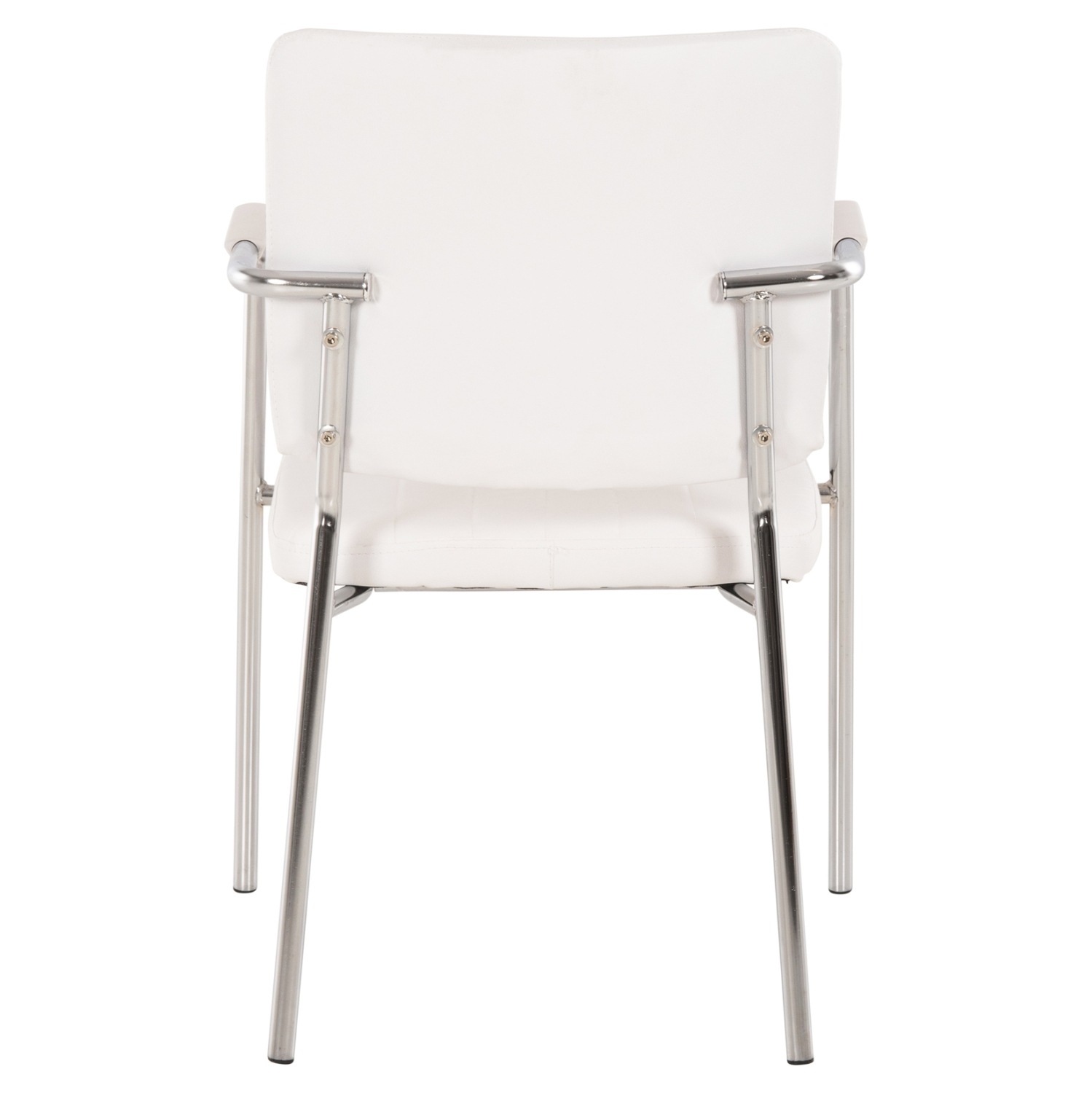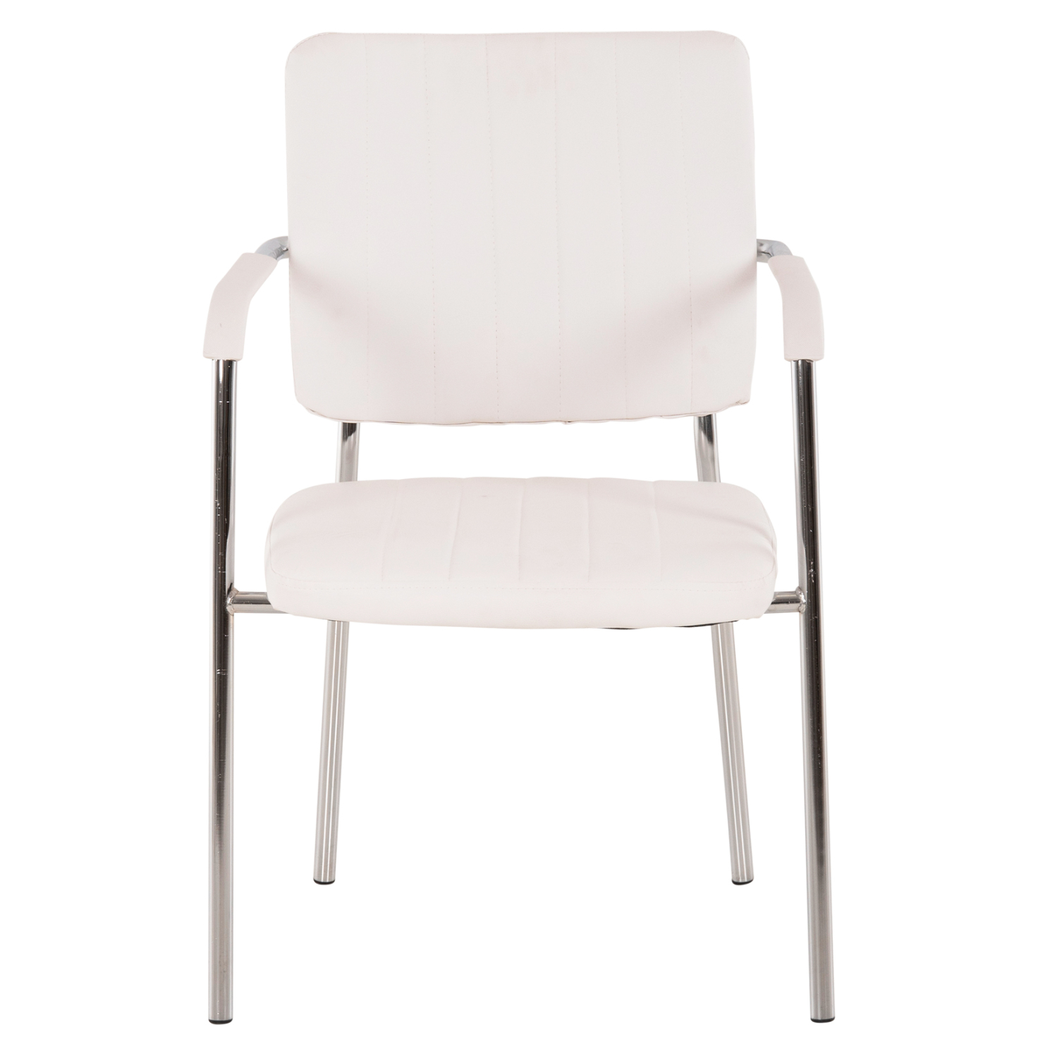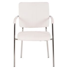 Καρέκλα επισκέπτου με μπράτσα, από λευκό PU και σκελετό από χρωμιωμένο ατσάλι για ύψιστη ασφάλεια, σταθερότητα και αντοχή.
