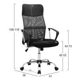 ΚΑΡΕΚΛΑ ΓΡΑΦΕΙΟΥ ELSIR HM1178.10 ΜΑΥΡΟΣ ΣΚΕΛΕΤΟΣ ΓΚΡΙ MESH 60x56x105 εκ.