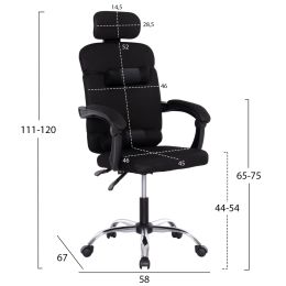 ΚΑΡΕΚΛΑ ΓΡΑΦΕΙΟΥ CABLE HM1000.01 ΜΑΥΡO MESH ΚΑΙ ΠΟΔΙ ΧΡΩΜΙΟΥ 61x56x118 εκ.