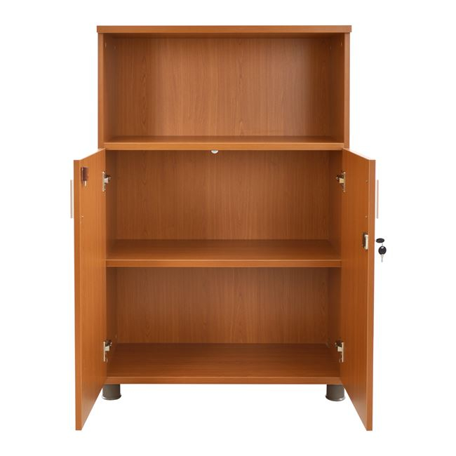 Ντουλάπι γραφείου για επαγγελματική χρήση, κατασκευασμένο από ανθεκτική μελαμίνη σε κερασί απόχρωση με δύο πόρτες, έναν ανοιχτό αποθηκευτικό χώρο,