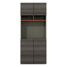 Επαγγελματική βιβλιοθήκη γραφείου από την σειρά Lux Series κατασκευασμένη από μελαμίνη υψηλής ποιότητας, σε μόκα και σταχτί ανάγλυφη απόχρωση και πορτοκαλί λεπτομέρειες.