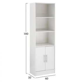 Η βιβλιοθήκη είναι κατασκευασμένη από μελαμίνη και διαθέτει τρεις ανοιχτούς αποθηκευτικούς χώρους και ένα ντουλάπι με δυο πόρτες και εσωτερικό ράφι.