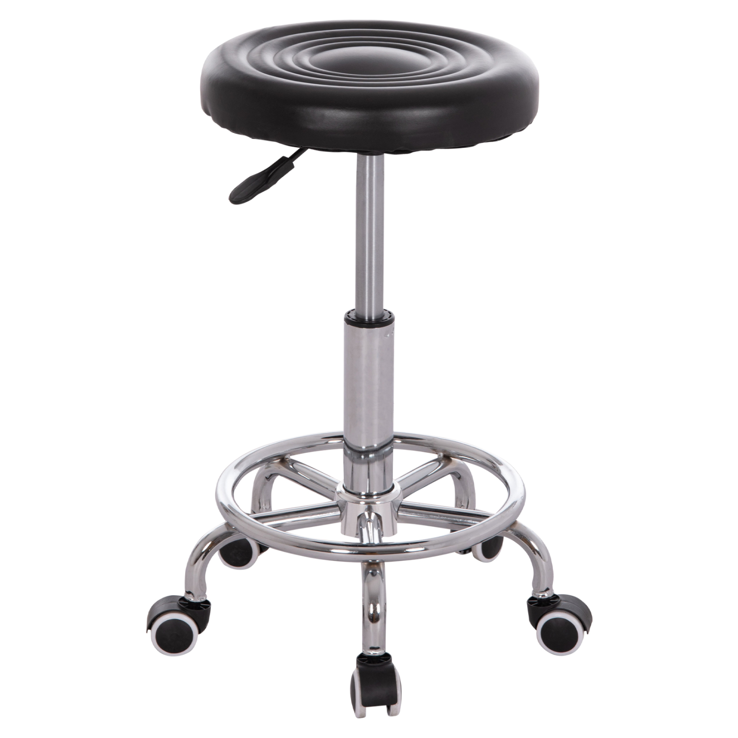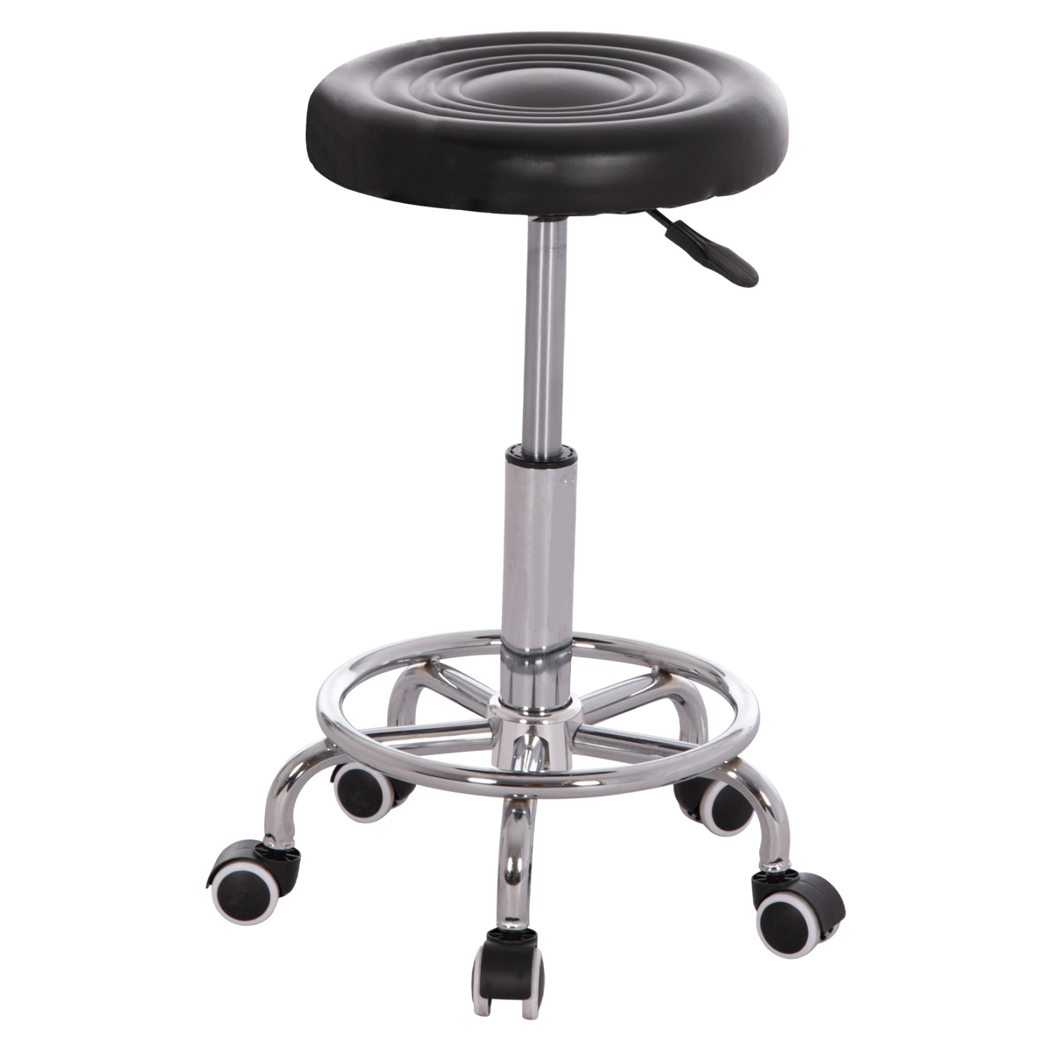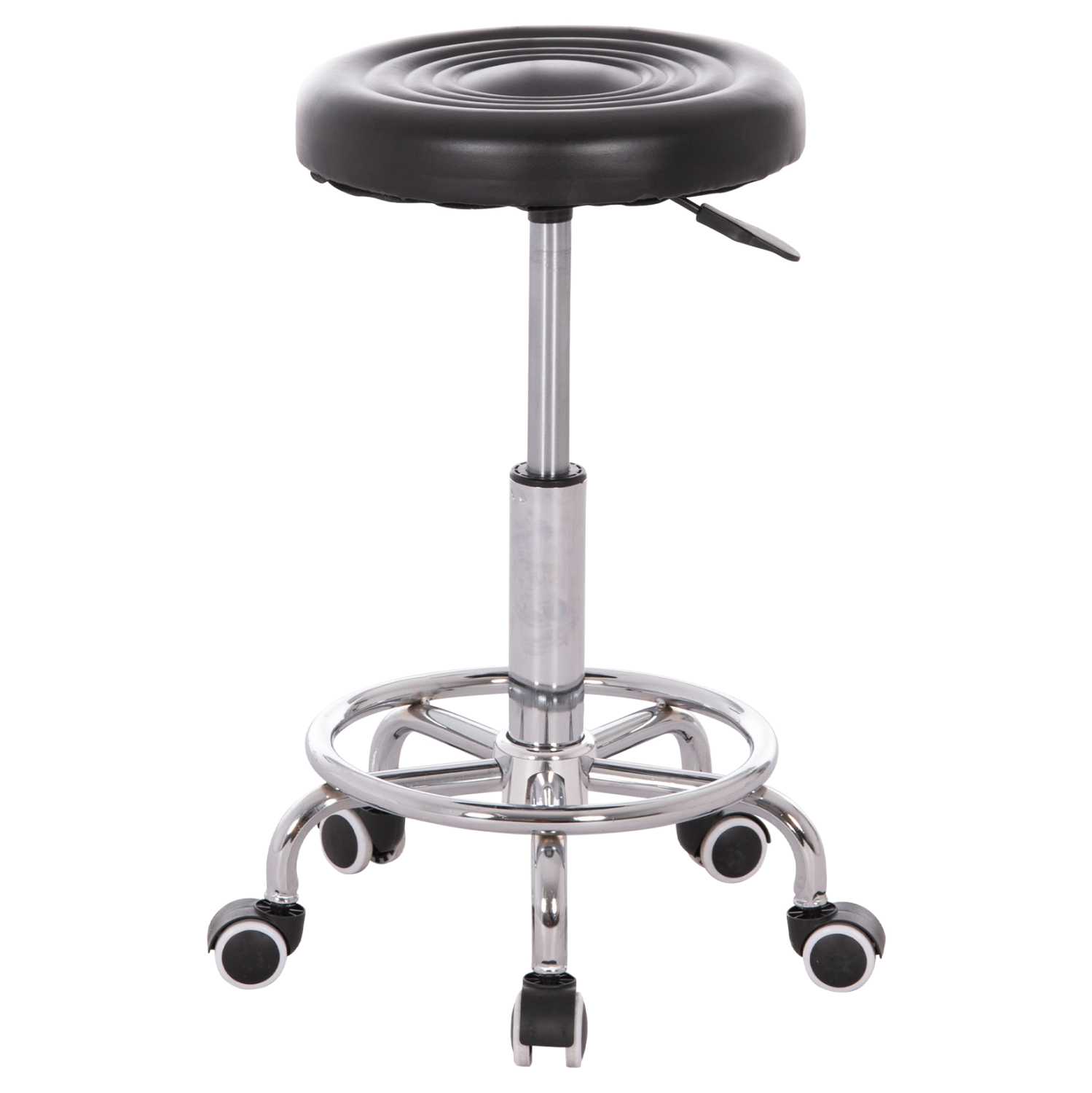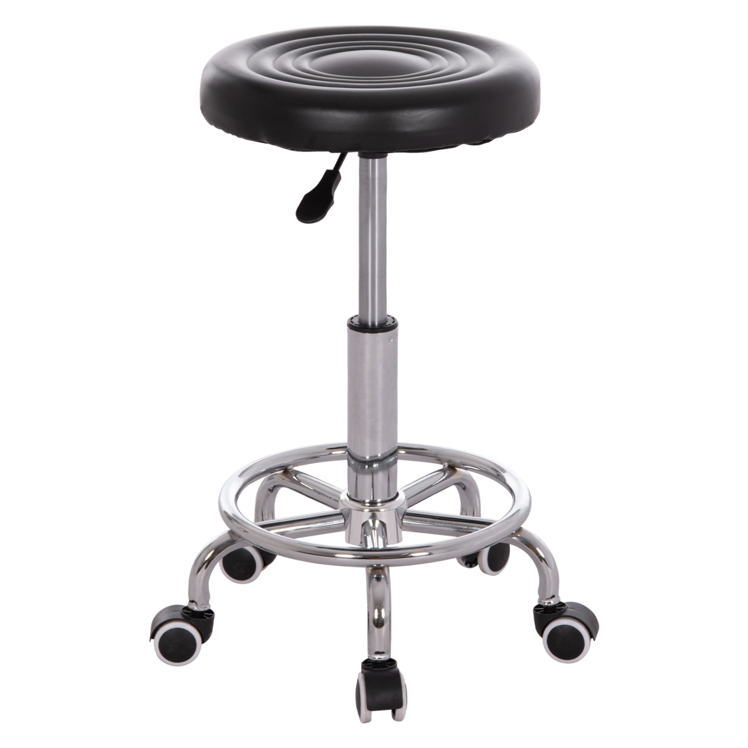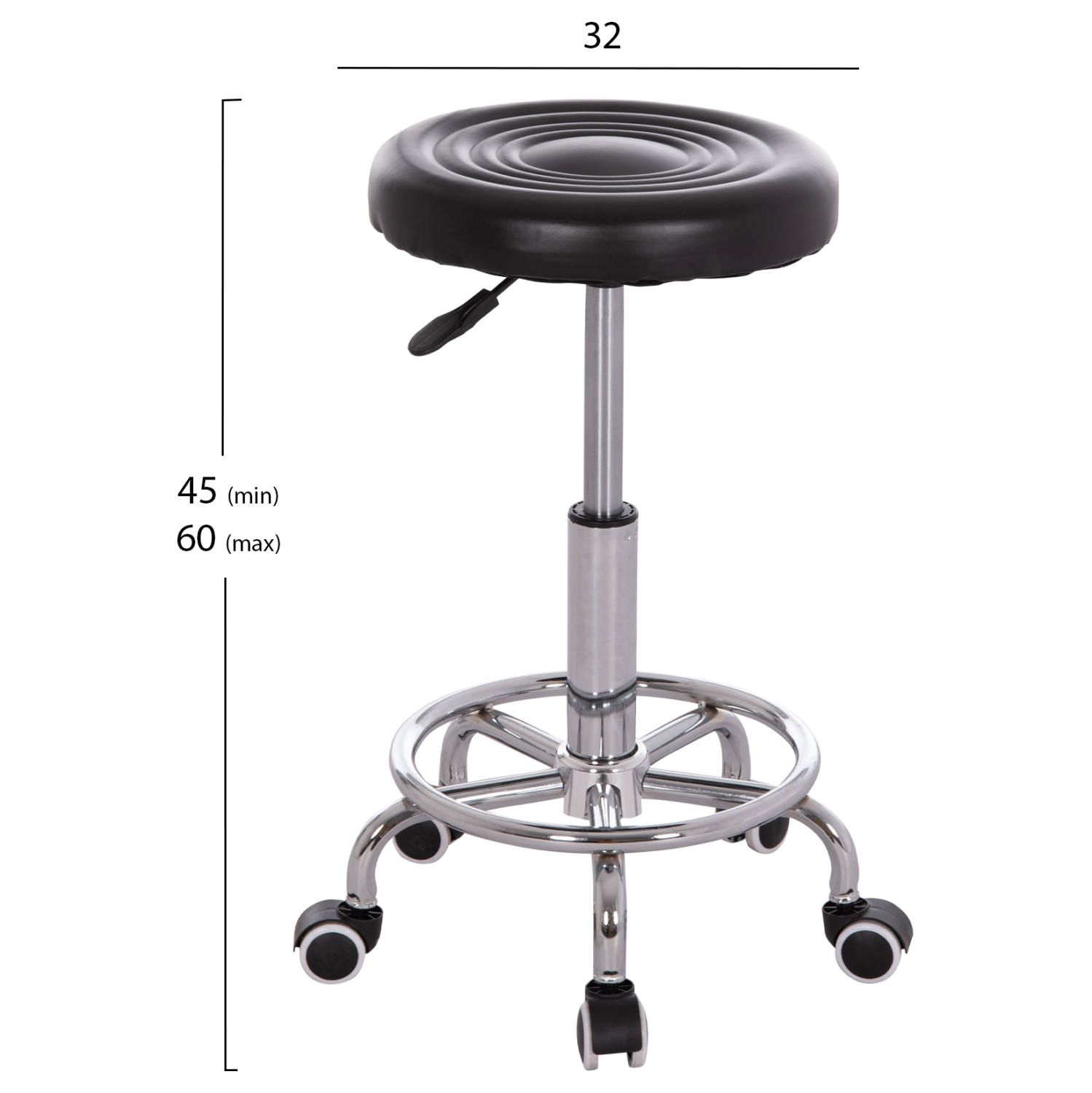 Το IRIS είναι ένα σκαμπό γραφείου με βολικές και συμπαγείς διαστάσεις, με χρωμιωμένη μεταλλική και έντονα κυρτή βάση «αστέρι» και ροδάκια πολυπροπυλενίου. Το στρογγυλό κάθισμα επενδυμένο με ΜΑΥΡΟ PU δέρμα είναι ικανοποιητικό σε μέγεθος, ενώ το αμορτισέρ δίνει την δυνατότητα ρύθμισης ύψους μέσω ενός εύχρηστου μοχλού κάτω από το κάθισμα. Επιπλέον, στο χρωμιωμένο «πόδι» υπάρχει ένα κυκλικό υποπόδιο έτσι ώστε να υπάρχει συνέχεια κατά την περιστροφή του καθίσματος, ξεκουράζοντας τον χρήστη.