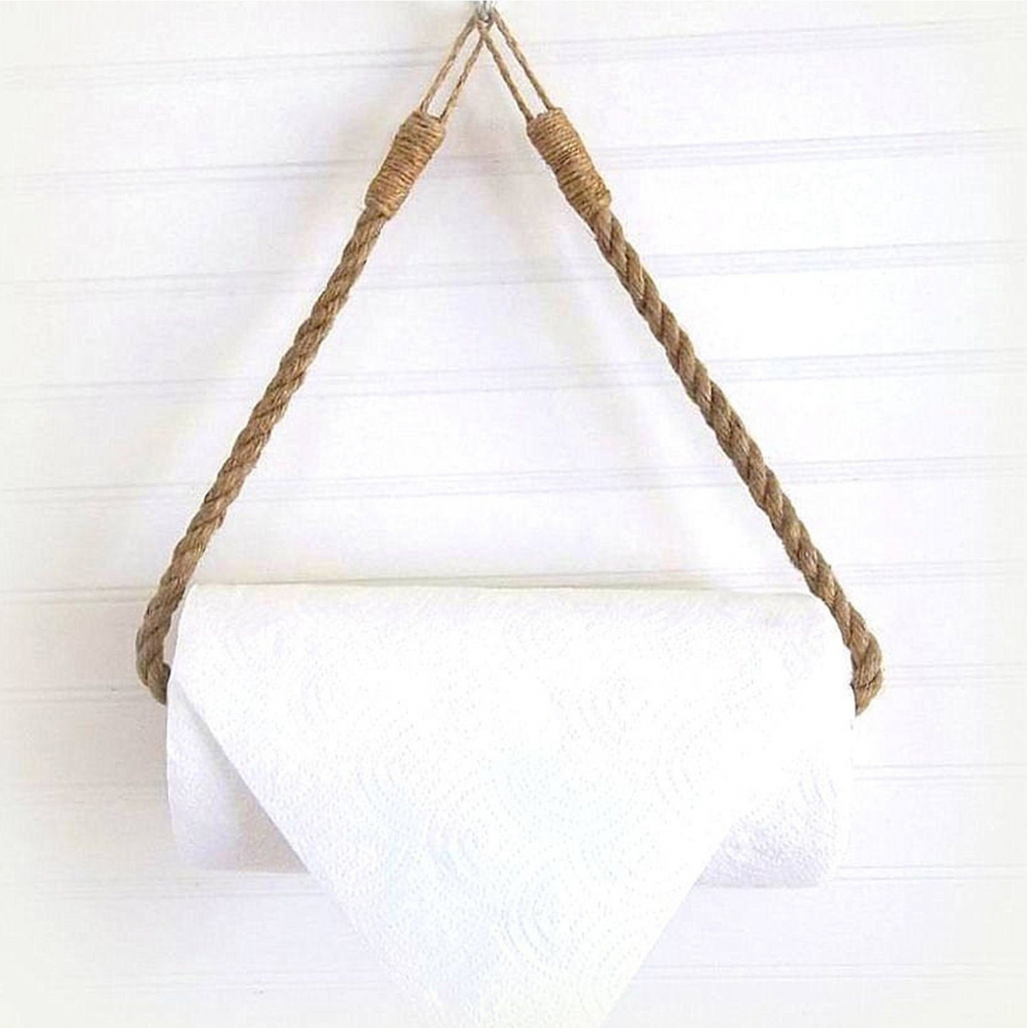 Κρεμάστρα χαρτοθήκη από σχοινί με μεταλλική βάση.
