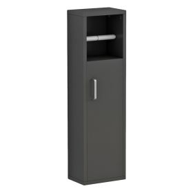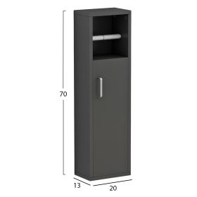 Το DAMIEN είναι ένα ντουλάπι σε ΑΝΘΡΑΚΙ χρώμα στενό με ενσωματωμένη θήκη για χαρτί υγείας στο επάνω μέρος. Πρόκειται για ένα πρακτικό έπιπλο που θα σας λύσει τα χέρια τόσο με τον αποθηκευτικό χώρο που διαθέτει, όσο και με τις βολικές του διαστάσεις. Επίσης, μπορείτε να το κρεμάσετε στον τοίχο για να προστατεύεται από την υγρασία του δαπέδου.