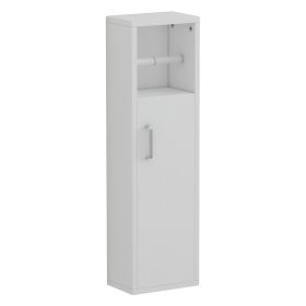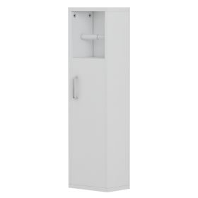 Το DAMIEN είναι ένα ΛΕΥΚΟ ντουλάπι στενό με ενσωματωμένη θήκη για χαρτί υγείας στο επάνω μέρος. Πρόκειται για ένα πρακτικό έπιπλο που θα σας λύσει τα χέρια τόσο με τον αποθηκευτικό χώρο που διαθέτει, όσο και με τις βολικές του διαστάσεις. Επίσης, μπορείτε να το κρεμάσετε στον τοίχο για να προστατεύεται από την υγρασία του δαπέδου.