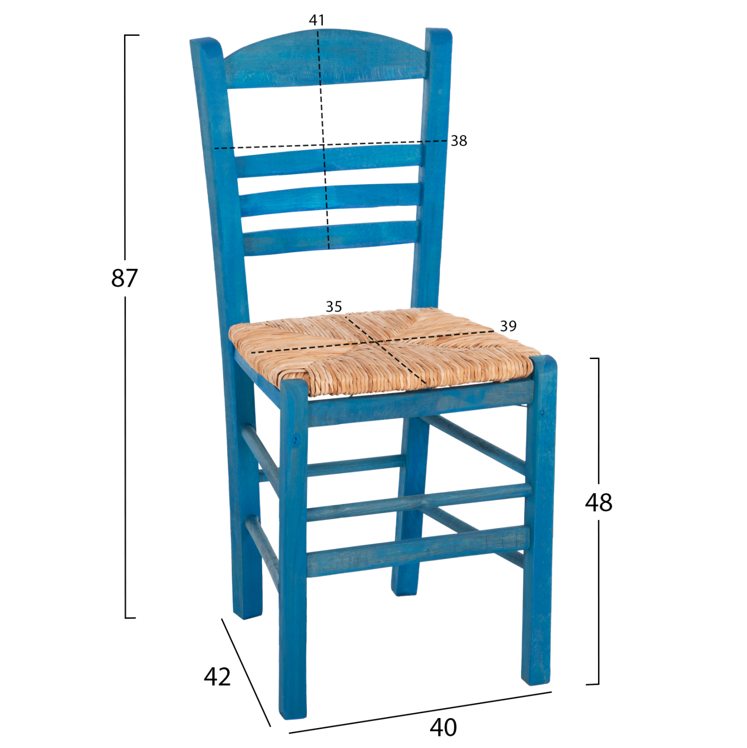 Η καρέκλα καφενείου σε στυλ επιλοχία, για επαγγελματική χρήση, είναι η παραδοσιακή καρέκλα από ξύλο οξιάς και παραδίδεται σε όμορφο ΜΠΛΕ χρώμα. Αισθητικά είναι κατάλληλη για ταβέρνα, καφενείο, αλλά και γενικότερα για χώρους διακοσμημένους