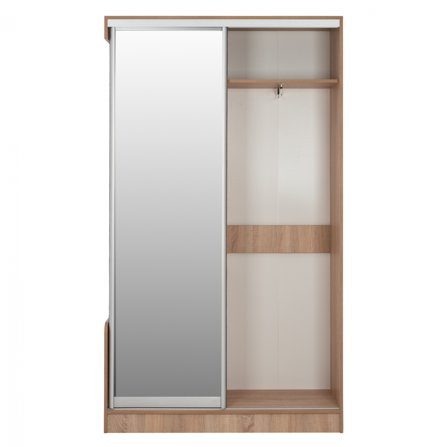 Μία σύνθεση επίπλου που συνδυάζει στη δεξιά πλευρά συρόμενη ντουλάπα με μεγάλο καθρέπτη εξωτερικά, ενώ εσωτερικά διαθέτει 1 ράφι στο επάνω μέρος και μια κάθετη συρόμενη προς τα έξω ράβδο κρέμασης, που διευκολύνει το κρέμασμα των ρούχων.