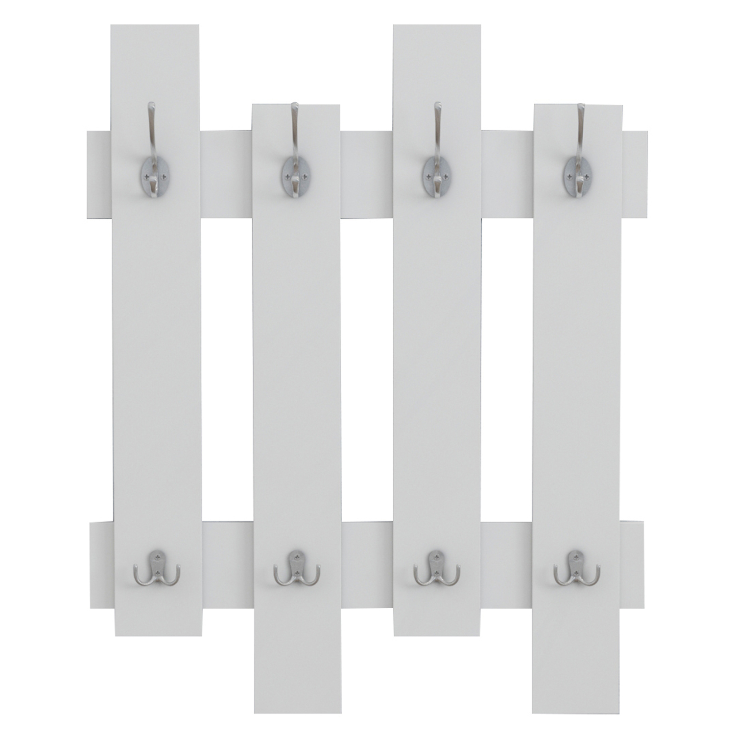 Η WESSON είναι μία επιτοίχια κρεμάστρα μελαμίνης σε χρώμα ΛΕΥΚΟ, με 8 διπλές μεταλλικές θέσεις κρέμασης σε ασημί χρώμα. Ένα χρήσιμο και πρακτικό «εργαλείο» κυρίως για την είσοδο του σπιτιού, αλλά και για διάφορα άλλα δωμάτια, που θα σας βοηθήσει να τακτοποιήσετε τον χώρο σας με τον καλύτερο τρόπο.