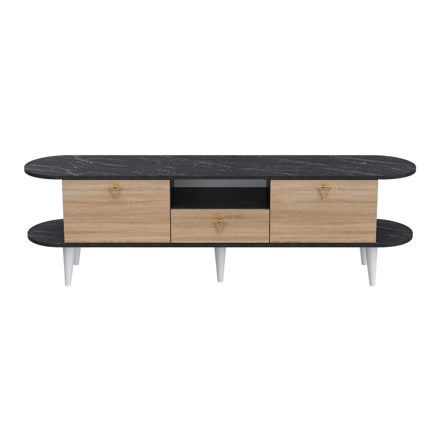 Το BEECON είναι ένα νέο έπιπλο τηλεόρασης, που κοσμεί την γκάμα μας! Έχει όμορφο σχεδιασμό με μακριές οβάλ επιφάνειες και 3 ντουλαπάκια κάτω από την κύρια επιφάνεια. Πρόκειται για μια κομψή και λιτή πρόταση για το σαλόνι σας σε χρώμα SONAMA με ΜΑΥΡΟ ΜΑΡΜΑΡΟ, ενώ τα πόδια είναι σε ΛΕΥΚΟ χρώμα!