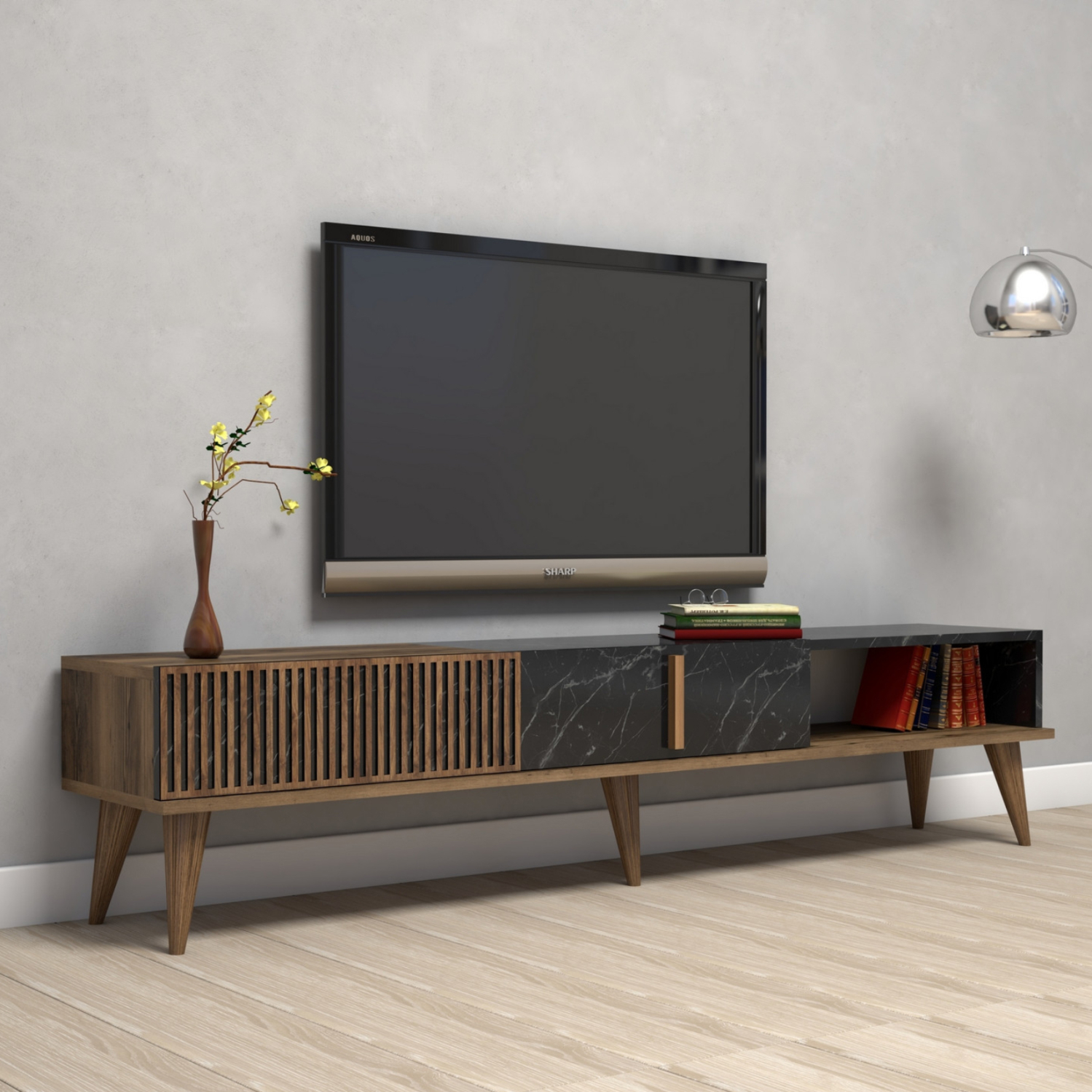 Αυτό το έπιπλο τηλεόρασης είναι όμορφο και φυσικά πρακτικό. Μπορεί να συνδυαστεί με πολλά στυλ διακόσμησης χάρη στα χρώματά του. Επίσης, μπορεί να στερεωθεί στον τοίχο για ακόμα μεγαλύτερη σταθερότητα. Μια ιδανική πρόταση για το σπίτι με τιμή που δεν θα σας αφήσει να κοιτάξετε αλλού!