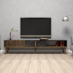 Το ΗΜ9512.02 είναι ένα μοντέρνο και λειτουργικό έπιπλο τηλεόρασης από μελαμίνη σε συνδυασμό χρωμάτων ΚΑΡΥΔΙ και ΟΨΗ ΜΑΥΡΟΥ ΜΑΡΜΑΡΟΥ, που θα ομορφύνει το σαλόνι σας! Είναι μακρύ και διαθέτει 3 ισομεγέθεις χώρους ως κύριο χώρο αποθήκευσης ή τοποθέτησης αντικειμένων. Οι δύο από αυτούς είναι ντουλάπια, που ανοίγουν κατακόρυφα. Τα πόδια είναι ψηλά και στο ίδιο χρώμα με την υπόλοιπη κατασκευή. Οι διαστάσεις του επίπλου είναι κατάλληλες για όλες τις τηλεοράσεις εάν θέλετε η τηλεόρασή σας να στηρίζεται σε βάση. Πρόκειται για μια κομψή πρόταση για το σαλόνι σας!