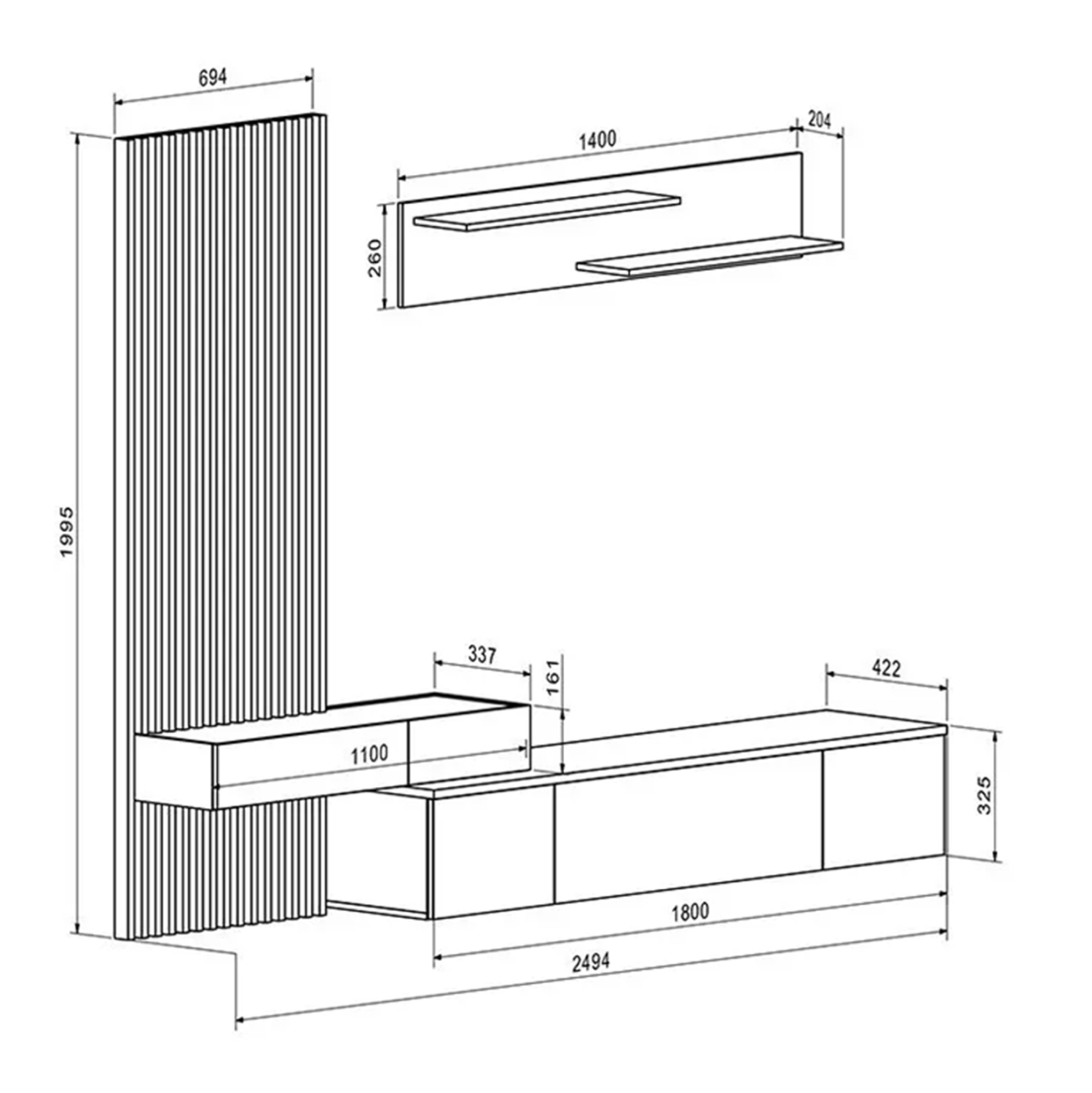 Κυρίως έπιπλο: 180x42.2x32.5Υ εκ.