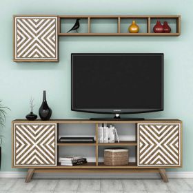 Το ΗΜ9516.03 είναι μια μοντέρνα και λειτουργική σύνθεση τηλεόρασης σε ΚΑΡΥΔΙ χρώμα, που θα ομορφύνει το σαλόνι σας! Αποτελείται από το κυρίως έπιπλο και από ένα ντουλάπι τοίχου και όμορφα ραφάκια. Το κυρίως έπιπλο είναι μακρύ και διαθέτει δυο ντουλάπια δεξιά-αριστερά με όμορφο σχέδιο στις ΛΕΥΚΕΣ πόρτες. Στην μέση υπάρχει ανοιχτός χώρος τοποθέτησης αντικειμένων χωρισμένος σε 4 μέρη. Η σύνθεση ολοκληρώνεται με ένα ντουλάπι τοίχου με ΛΕΥΚΗ πόρτα και ένα μακρόστενο ράφι χωρισμένο επίσης σε 4 μέρη. Μια σύνθεση που θα αλλάξει και θα αναβαθμίσει την εικόνα του σαλονιού σας!
