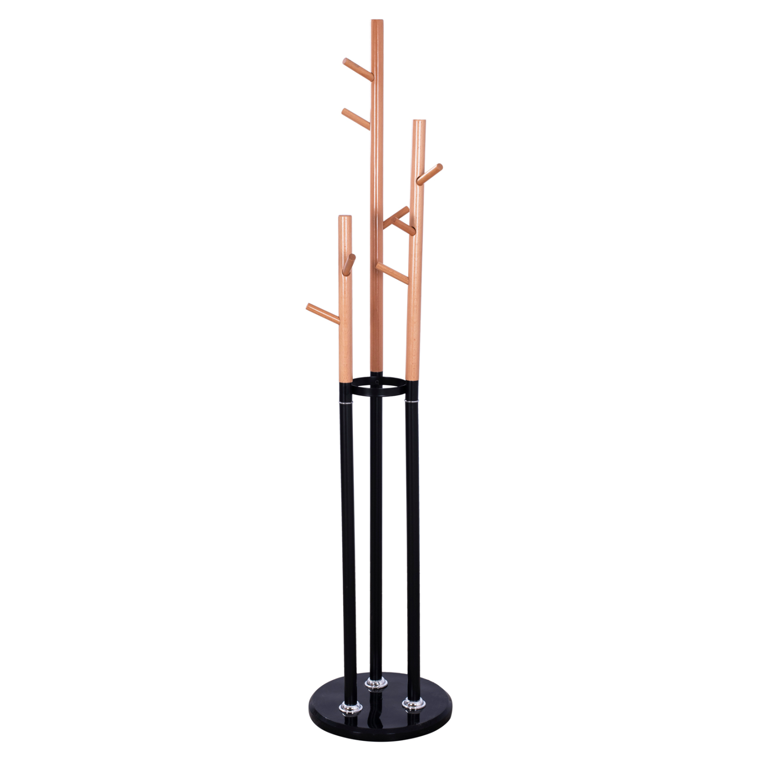 Ο καλόγερος WYATT είναι ένα έπιπλο χρησιμότατο για κάθε χώρο. Είναι αρθρωτός από ξύλο οξιάς σε φυσικό χρώμα και μέταλλο σε ΜΑΥΡΟ χρώμα και στρογγυλή μαρμάρινη βάση, που παρέχει το απαραίτητο χαμηλό κέντρο βάρους. Το χαρακτηριστικό του είναι ότι οι 9 θέσεις κρέμασης βρίσκονται σε 3 κολώνες ενωμένες με μεταλλικό κρίκο. Πρόκειται για έναν εντυπωσιακό καλόγερο που θα ομορφύνει την είσοδο του σπιτιού ή του επαγγελματικού σας χώρου.