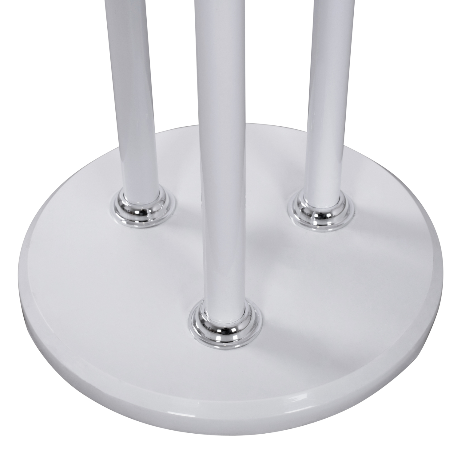 Καλόγερος από μέταλλο σε λευκή απόχρωση και ξύλο οξιάς, με τσιμεντένια βάση με πλαστική επικάλυψη σε λευκό χρώμα.