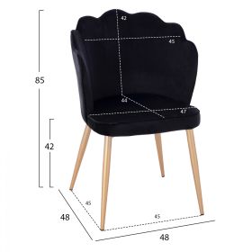 Καρέκλα από βελούδινο ύφασμα σε μαύρη απόχρωση, με χρυσά πόδια 48x48x85 εκ.