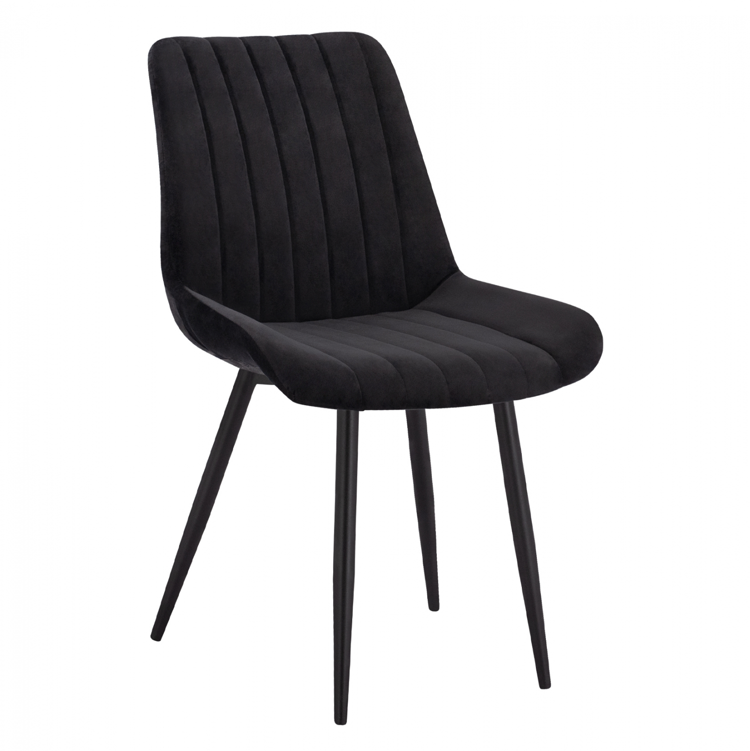 Καρέκλα Chase επενδυμένη με ύφασμα βελούδο και μεταλλικά πόδια σε μαύρη απόχρωση.