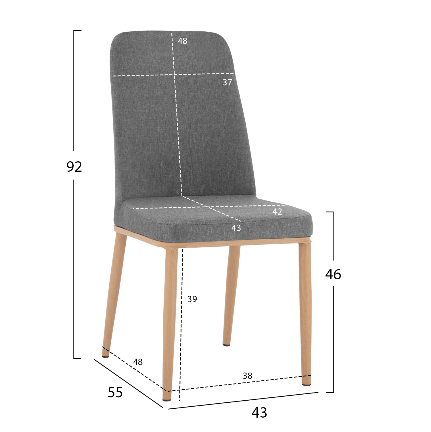 Καρέκλα EILISH με επένδυση από ύφασμα σε γκρι απόχρωση.
