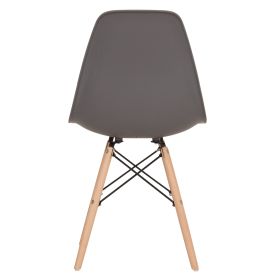 Μία μοντέρνα καρέκλα κατασκευασμένη από ξύλινο σκελετό και κάθισμα πολυπροπυλενίου σε γκρι απόχρωση.