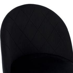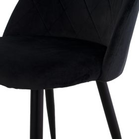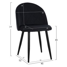 Καρέκλα επενδυμένη με ύφασμα βελούδο σε μάυρη απόχρωση και μεταλλικό μαύρο σκελετό.