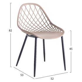 Η καρέκλα ΗΜ9524.03 έχει όλα όσα θα θέλατε από ένα τέτοιο έπιπλο. Είναι ποιοτική και κομψή στην όψη, και σίγουρα τραβάει τα βλέμματα. Η πλάτη και το κάθισμα είναι ένα μονοκόμματο χυτό κομμάτι πολυπροπυλενίου σε KΑΠΟΥΤΣΙΝΟ χρώμα. Η πλάτη, μάλιστα, έχει «δικτυωτό» σχήμα, πράγμα που την κάνει ευχάριστη και ελαφριά. Η βάση του καθίσματος και τα πόδια είναι μεταλλικά σε χρώμα ΜΑΥΡΟ ΜΑΤ. Όλη η κατασκευή είναι ελαφριά και άνετη, και θα γίνει το αγαπημένο κάθισμα σε όποιο χώρο κι αν τοποθετηθεί χάρη στην πρακτικότητά του. Ιδανική επιλογή και για επαγγελματική χρήση, όπως σε catering κτλ.