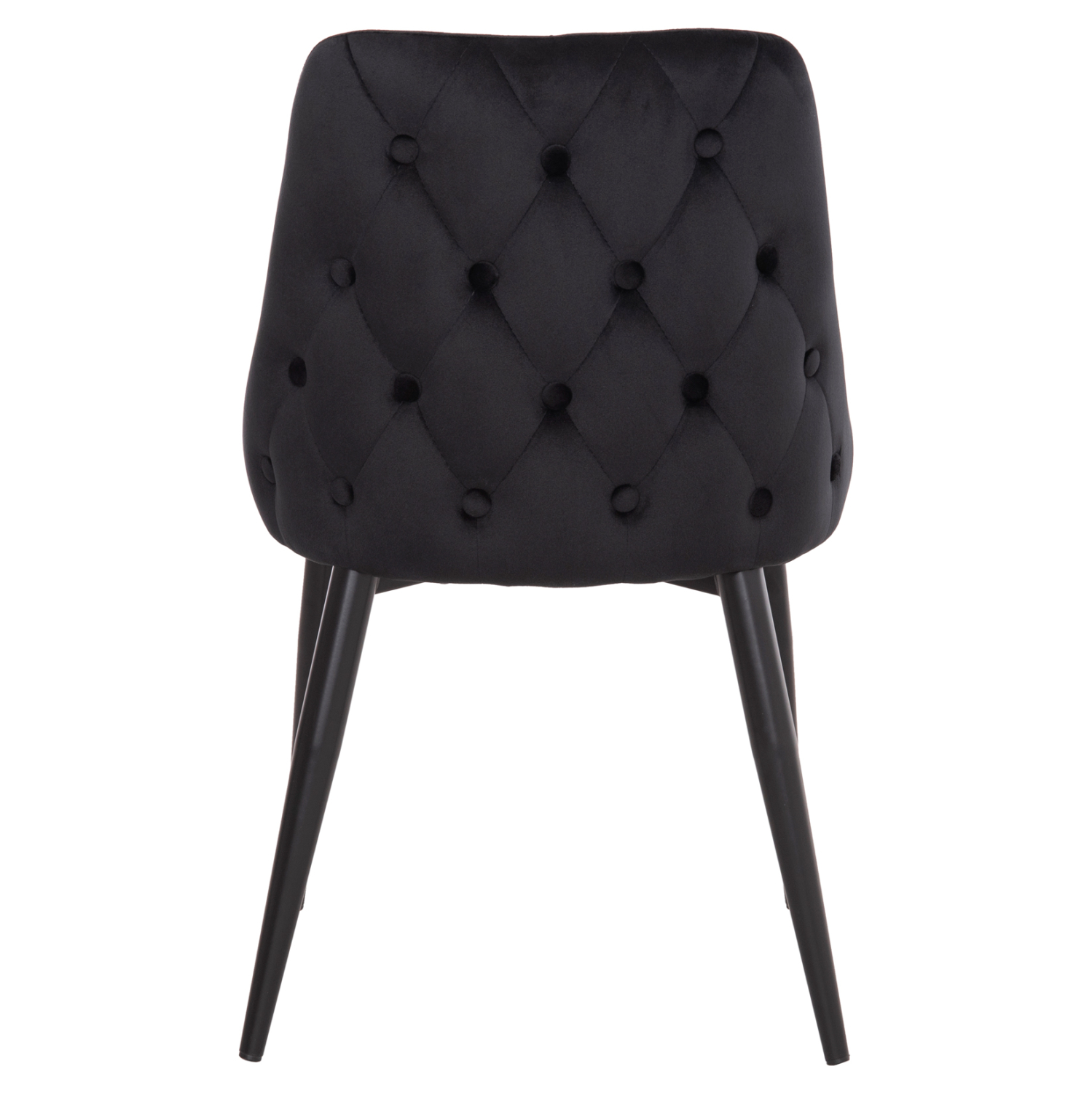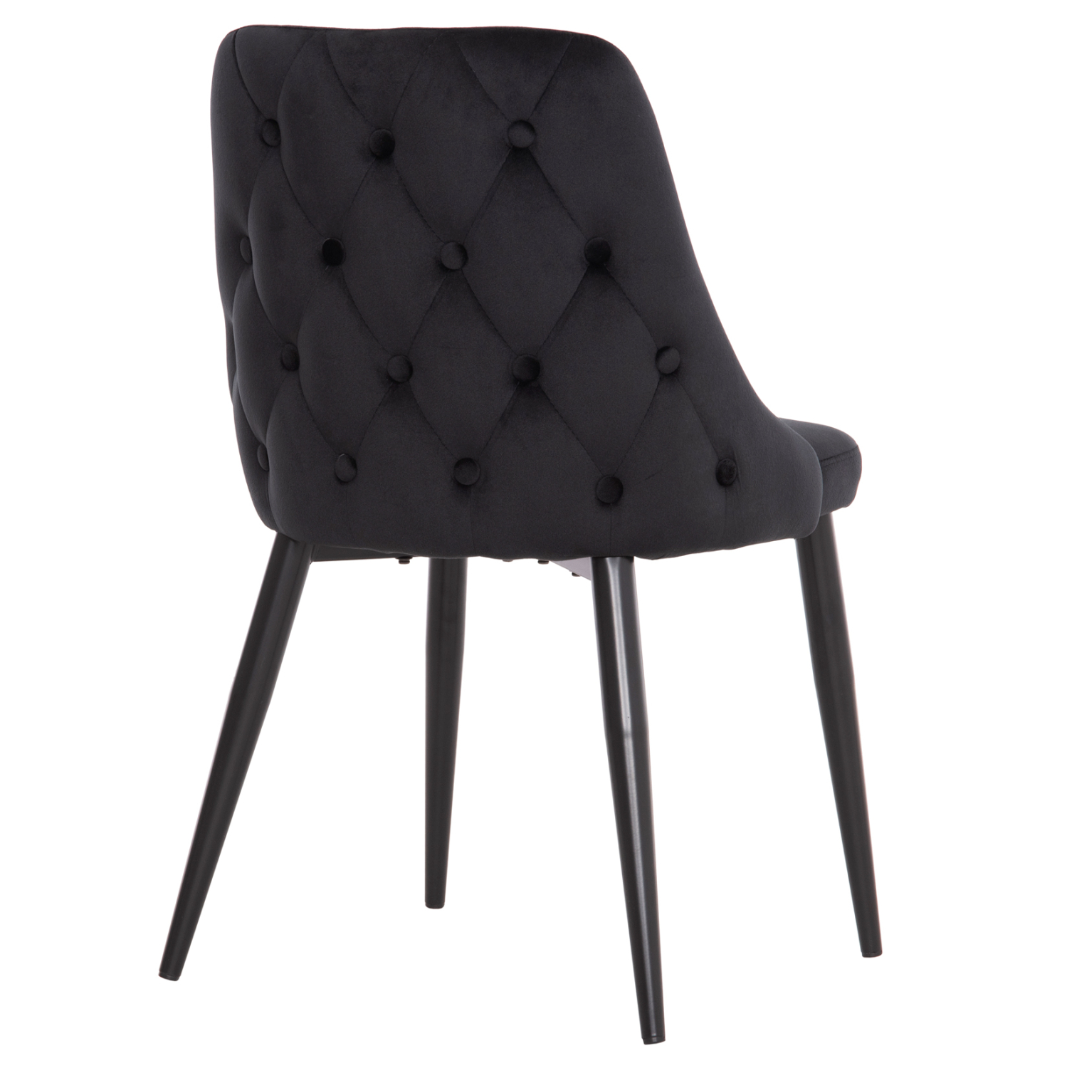 Η καρέκλα τραπεζαρίας SERENITY είναι μοντέρνα, άνετη και σταθερή! Το κάθισμα της καρέκλας είναι άνετο και το πίσω μέρος της πλάτης έχει στυλ καπιτονέ. Η βελούδινη επένδυση σε ΜΑΥΡΟ χρώμα και τα ΜΑΥΡΑ μεταλλικά πόδια συνθέτουν μια όμορφη μονοχρωμία. Πρόκειται για μια πρόταση λιτή, και πολυτελής.