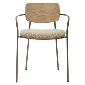 Η καρέκλα τραπεζαρίας VIKKI με τον λιτό σχεδιασμό της ενώνει αρμονικά τον μεταλλικό σκελετό σε ANTIQUE ΧΑΛΚΙΝΟ χρώμα, με το υψηλής ποιότητας ΜΠΕΖ ύφασμα του καθίσματος και την ξύλινη πλάτη σε χρωματισμό WHITE WASH. Συνδυάστε την με ένα ωραίο τραπέζι και δημιουργήστε μια όμορφη και ποιοτική τραπεζαρία.