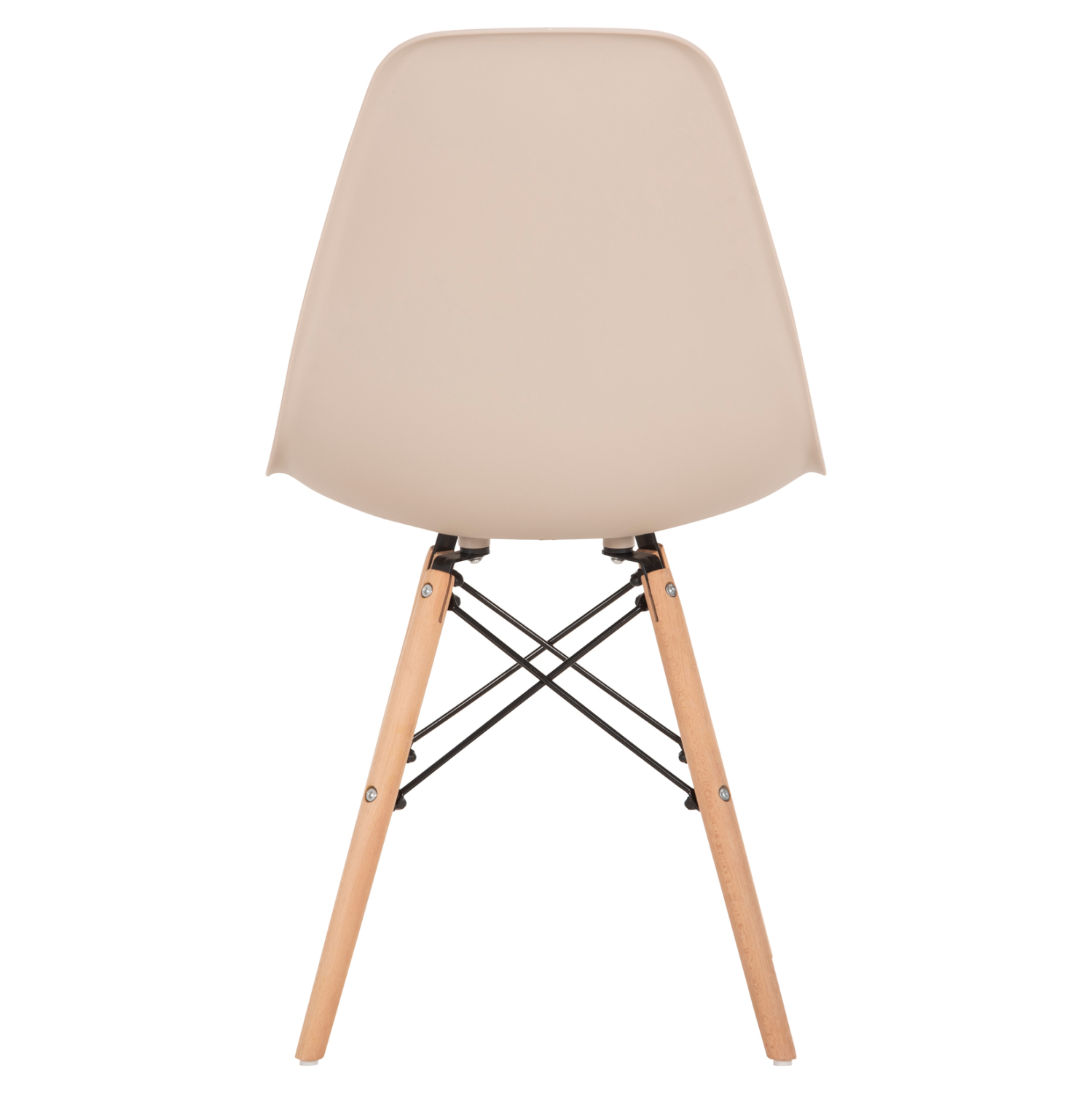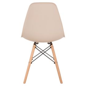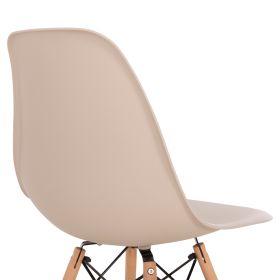 Μία μοντέρνα καρέκλα κατασκευασμένη από ξύλινο σκελετό και κάθισμα πολυπροπυλενίου σε απόχρωση καπουτσίνο.