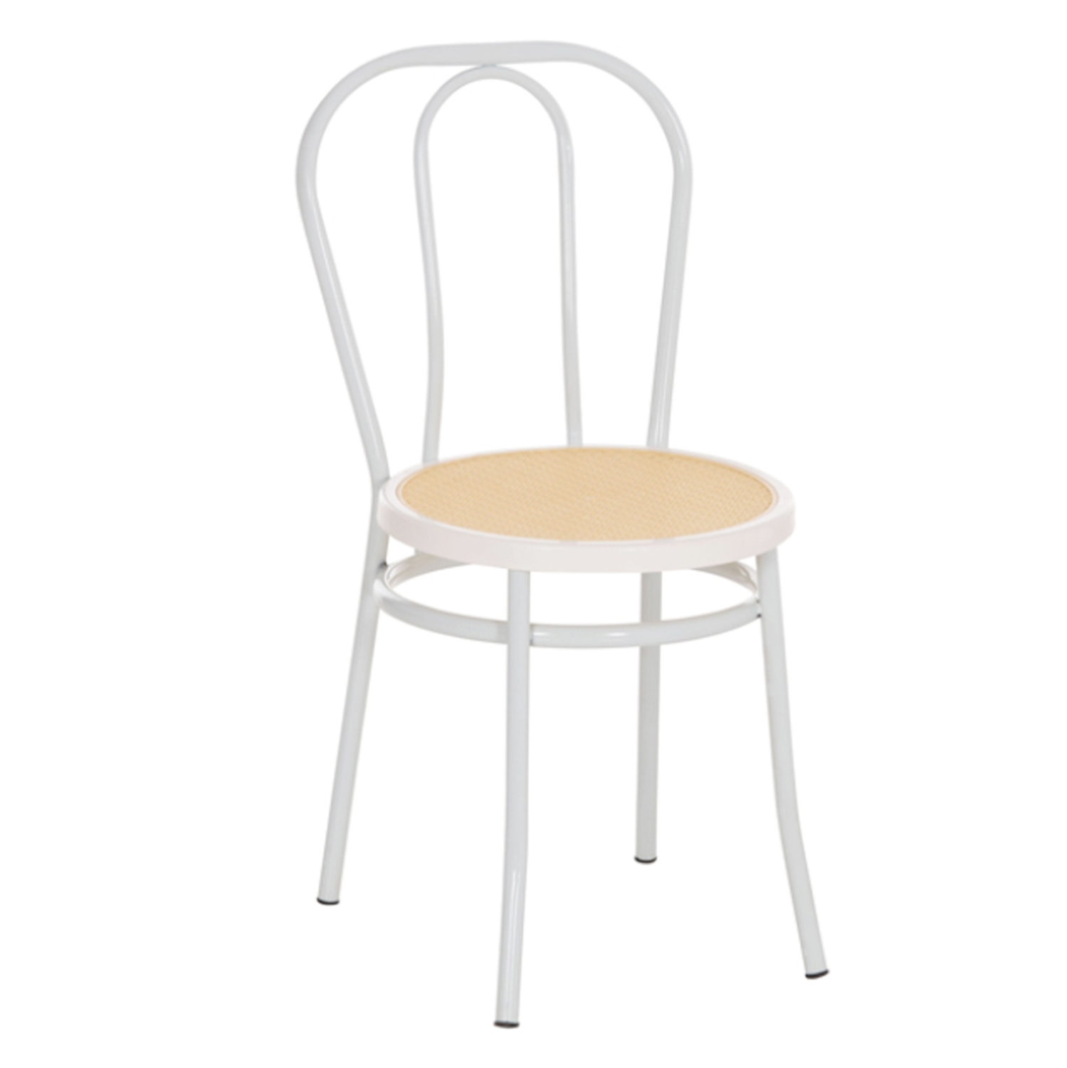 Καρέκλα τραπεζαρίας τύπου Βιέννης, με μεταλλικό σκελετό και κάθισμα από πλαστική ψάθα.