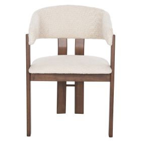Η νέα μας καρέκλα τραπεζαρίας ZARRA θα μαγνητίσει τα βλέμματα. Έχει σκελετό από ποιοτικό μασίφ rubberwood (καουτσουκόδεντρο) σε καρυδί χρώμα, ενώ τόσο η ημικυκλική πλάτη όσο και το κάθισμα είναι επενδυμένα με «ζεστό» μπουκλέ ύφασμα σε ΕΚΡΟΥ χρώμα. Μια καρέκλα που με το εντυπωσιακό της design θα προσδώσει όμορφη εμφάνιση αλλά και κύρος στην τραπεζαρία σας, τόσο στο σπίτι, όσο και σε επαγγελματικούς χώρους.