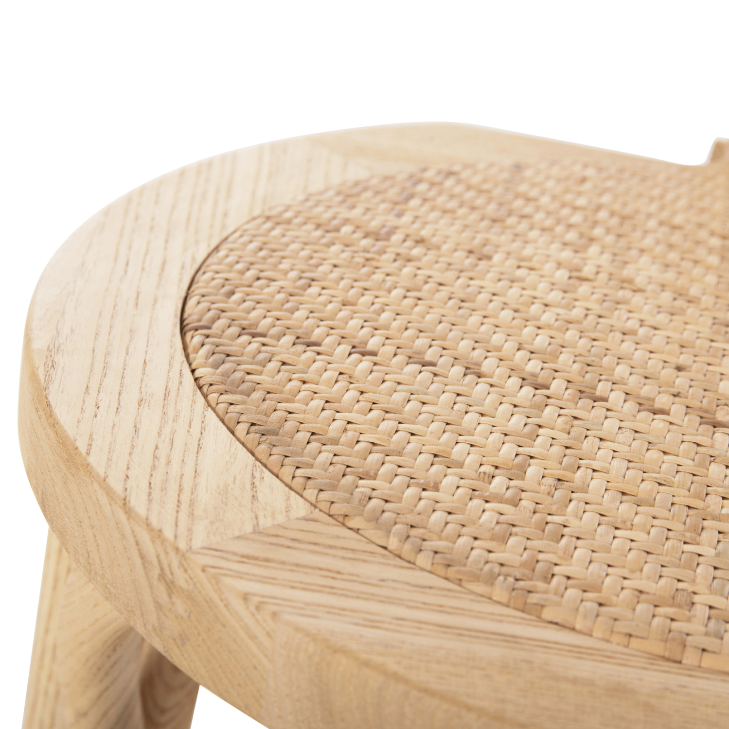 Το κάθισμά της είναι φτιαγμένο από φυσική ψάθα με χειροποίητη πλέξη η οποία στηρίζεται σε ξύλινη επιφάνεια.