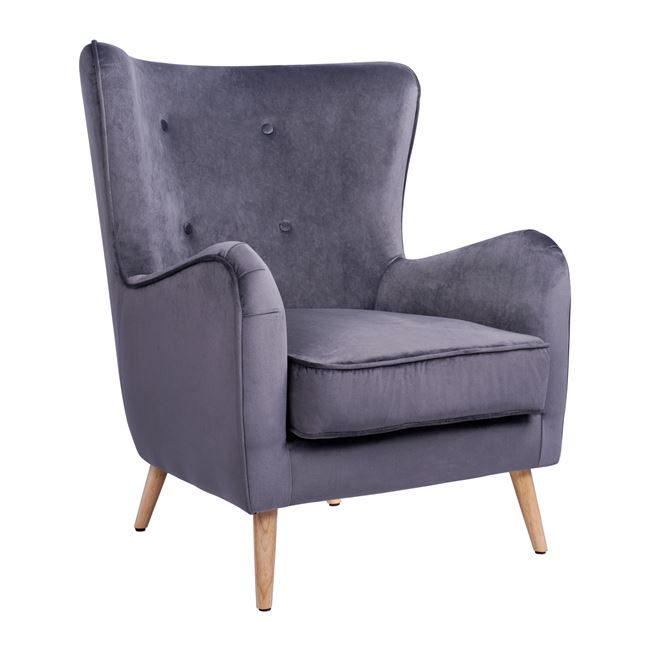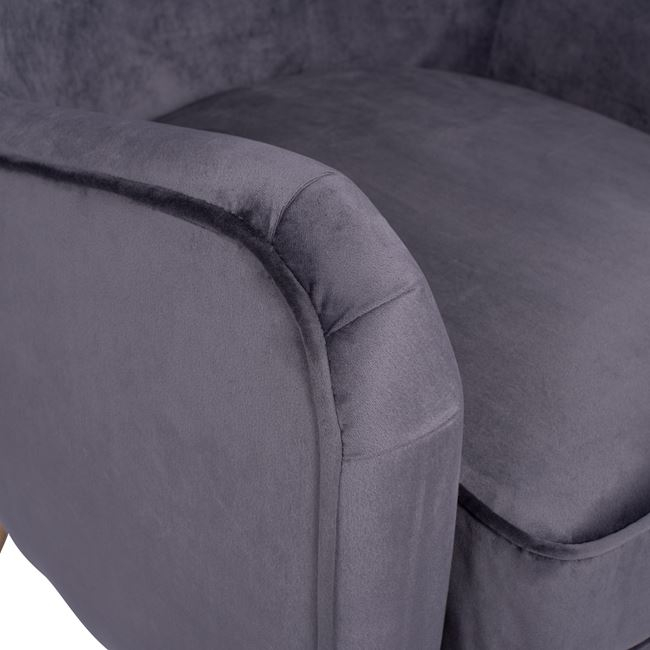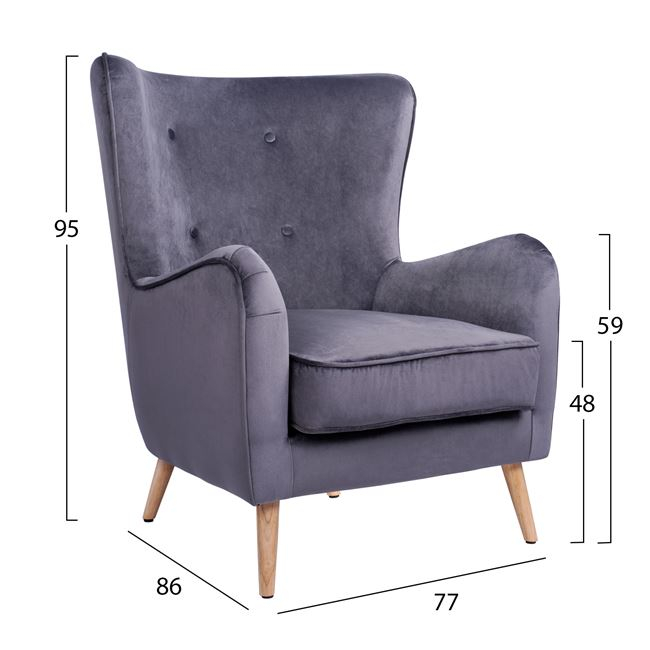 Σας παρουσιάζουμε την πολυθρόνα-μπερζέρα MΑRTA, σε ουδέτερο ΓΚΡΙ χρώμα με πόδια σε φυσικό χρώμα ξύλου δημιουργώντας μια απαλή διχρωμία. Η ψηλή και κυρτή πλάτη με τα 4 κουμπάκια, προσδίδει ιδιαίτερη ομορφιά στην πολυθρόνα σε συνδυασμό, φυσικά, με το υψηλής ποιότητας βελούδινο ύφασμα. Το μαξιλάρι στο κάθισμα είναι παχύ και αναπαυτικό ανταποκρινόμενο στον χαρακτήρα της πολυθρόνας, ενώ το χαρακτηριστικό αυτής της πολυθρόνας είναι οι έντονες καμπύλες της τόσο ψηλά στην πλάτη όσο και στα μπράτσα. Είναι μοντέρνα συνδυάζοντας στιλ και άνεση και μπορείτε να την τοποθετήσετε δίπλα στο τζάκι, σε ένα παράθυρο ή ακόμα και στο υπνοδωμάτιό σας, και να αφεθείτε στην «αγκαλιά» της.