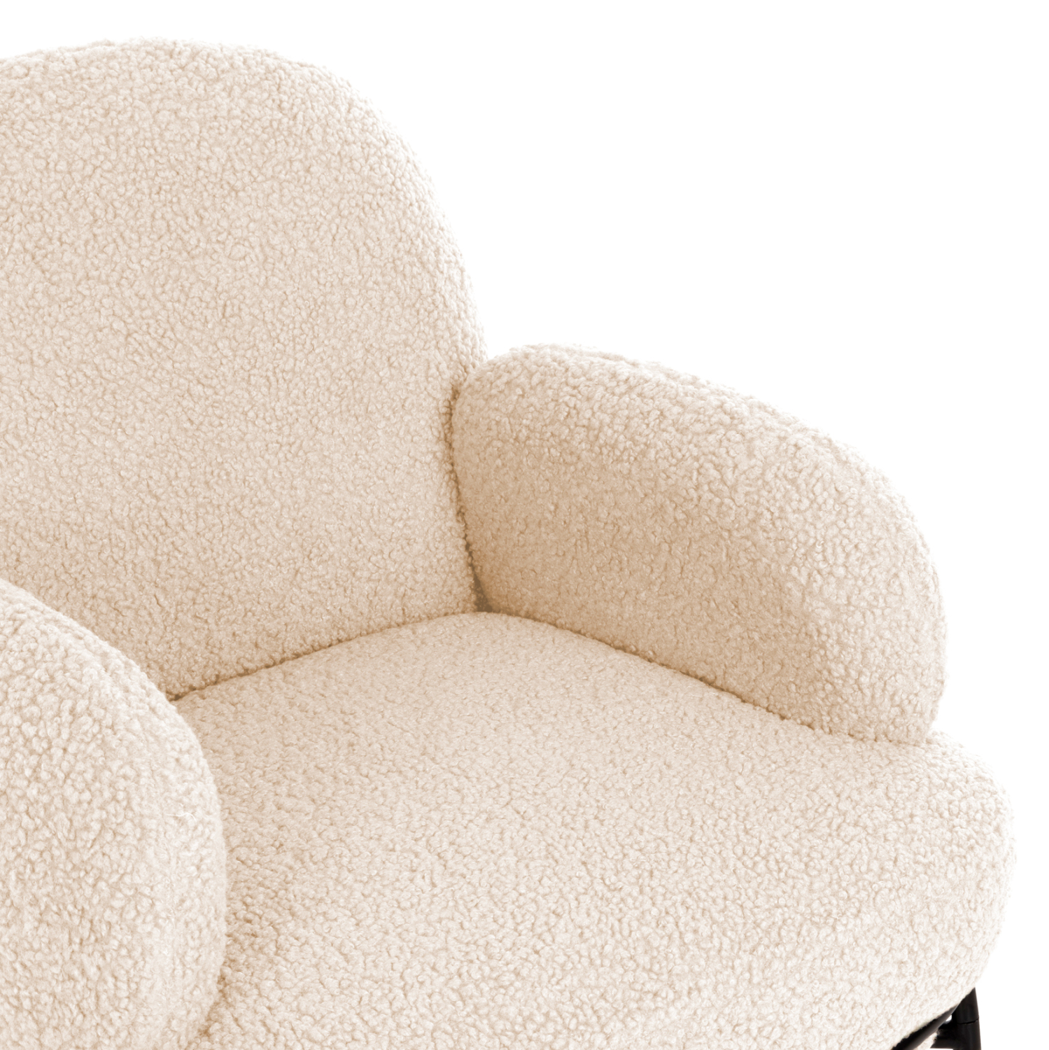 Η πολυθρόνα AGNES είναι μοντέρνα και άνετη. Το κυρίαρχο χρώμα είναι το ΛΕΥΚΟ, ενώ τα 4 πόδια είναι σε μαύρο χρώμα. Η επένδυση της πολυθρόνας έχει γίνει με ζεστό ΜΠΟΥΚΛΕ ύφασμα που θα δώσει μια διαφορετική όψη στον χώρο σας. Πρόκειται για μια πρόταση όμορφη που θα ταιριάξει σχεδόν παντού!