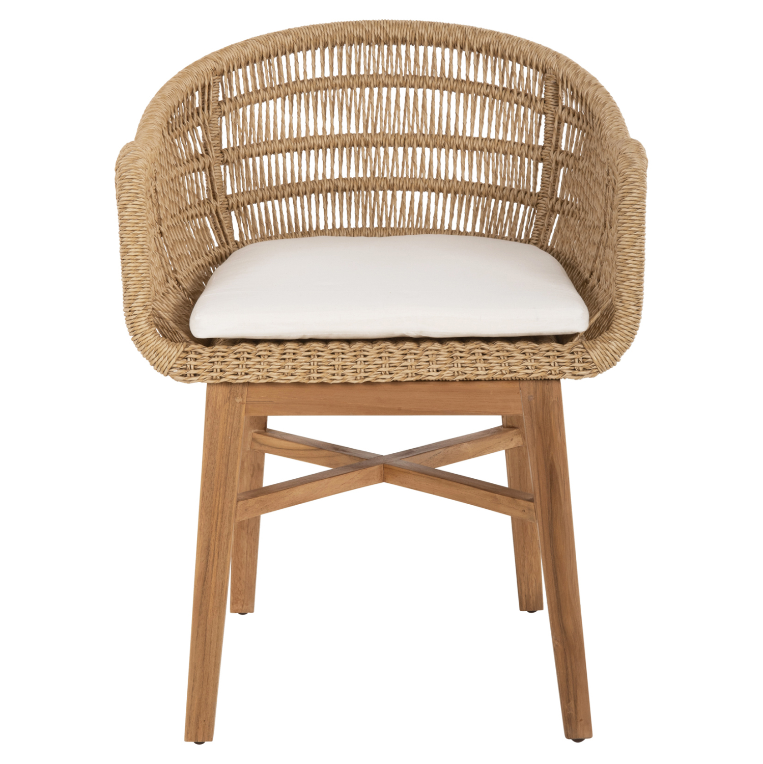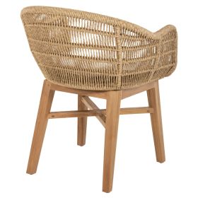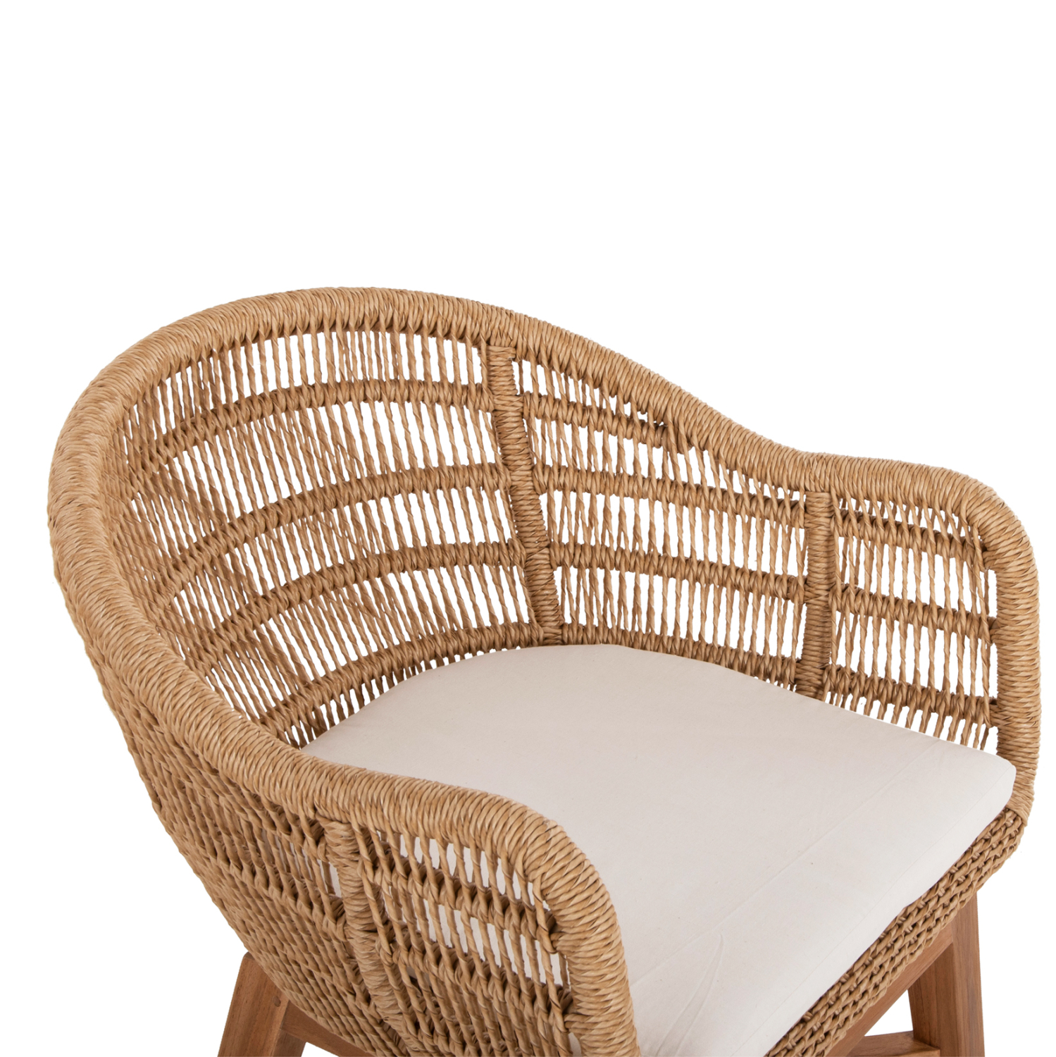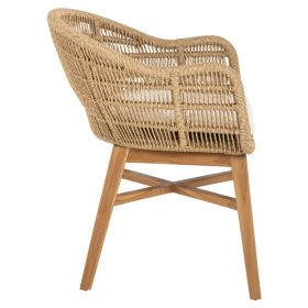 Η πολυθρόνα LAMORA είναι πανέμορφη! Μοντέρνα, άνετη και σταθερή! Διαθέτει ξύλινα πόδια που συνδέονται με χιαστί διάταξη σε φυσικό χρώμα, πάνω στα οποία στηρίζεται ο αλουμινένιος σκελετός που είναι επενδυμένος με σχοινί VIRO σε πλέξη wicker σε ΜΠΕΖ χρώμα. Το κάθισμα της πολυθρόνας διαθέτει μαξιλάρι σε ΛΕΥΚΟ χρώμα, και η πολυθρόνα γενικά δίνει την αίσθηση ότι αγκαλιάζει το σώμα.