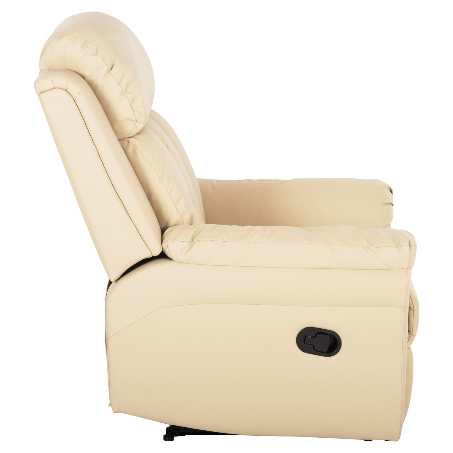 Η HAPPER με επένδυση από ΕΚΡΟΥ PU leather, είναι μια όμορφη πολυθρόνα που θα σας ενθουσιάσει. Οπτικά, γεμίζει τις αισθήσεις όλων με τις πλούσιες διαστάσεις και τα αναπαυτικά μαξιλάρια της. Η πλάτη είναι ψηλή ενώ το βαθύ κάθισμα και τα μπράτσα σε προκαλούν να απλώσεις τα χέρια σου επάνω στα πλούσια μαξιλάρια τους. Και όταν γυρνάτε από την δουλειά και θέλετε να χαλαρώσετε μπροστά στην τηλεόρασή σας, ή να διαβάσετε την εφημερίδα σας, ή το αγαπημένο σας βιβλίο μπροστά στο παράθυρο ή το τζάκι, τότε ο μηχανισμός relax με τον μοχλό στην εξωτερική πλευρά του μπράτσου σε συνδυασμό με το πτυσσόμενο υποπόδιο θα σας προσφέρει ανεπανάληπτες στιγμές χαλάρωσης.