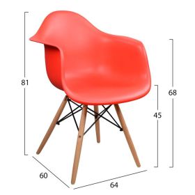 Πολυθρόνα από ματ polypropylene σε κόκκινο χρώμα. Ταιριάζει με όλα σχεδόν τα στιλ και είναι μια καρέκλα σταθμός στην ιστορία του design.