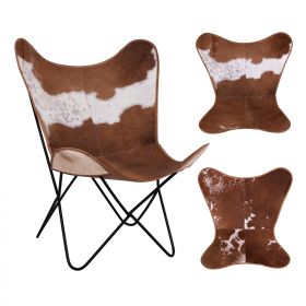 Μοντέρνα πολυθρόνα από μαύρο μεταλλικό σκελετό και γνήσιο δέρμα αγελάδος σε καφέ - λευκή απόχρωση.