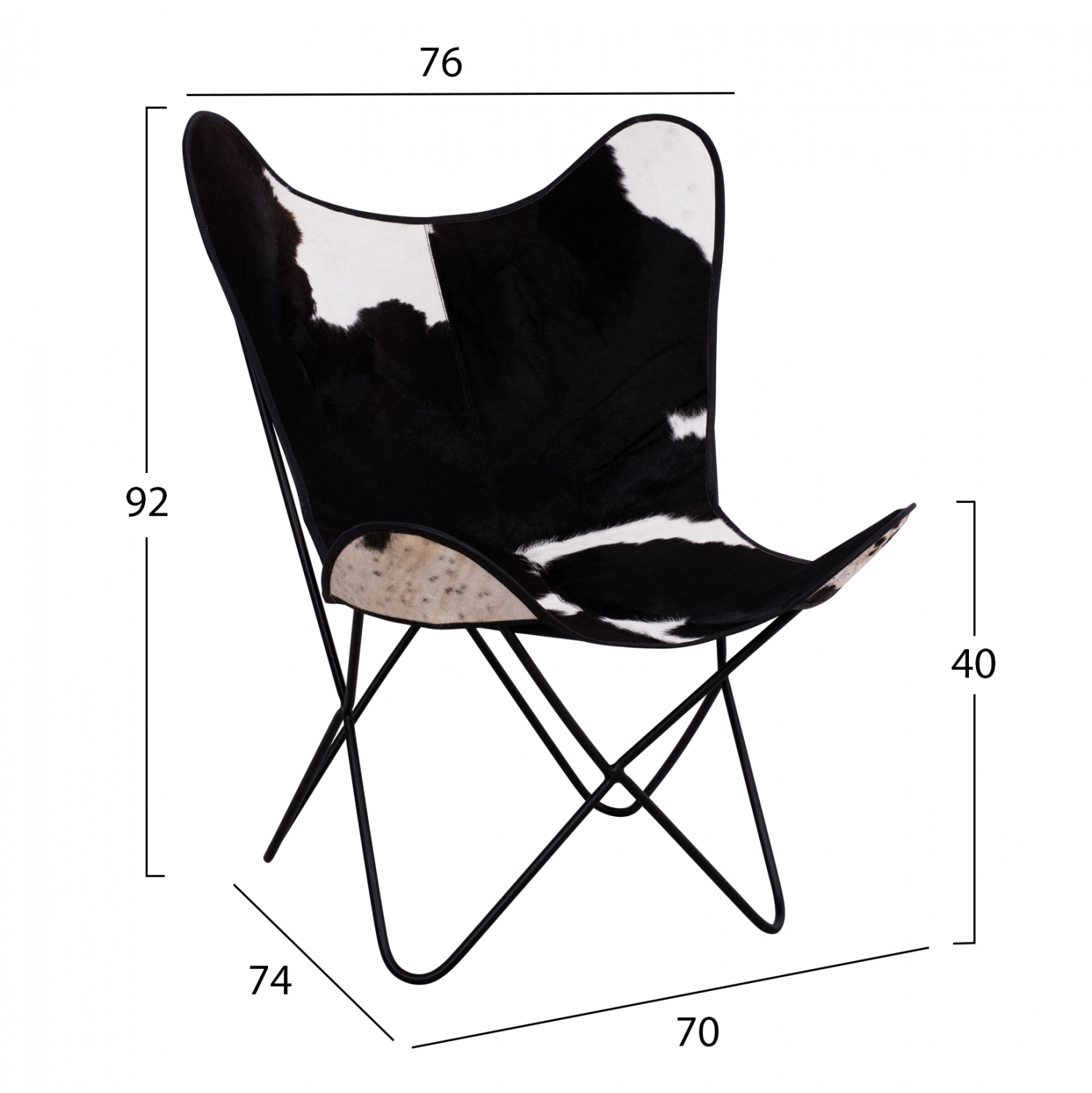 Μοντέρνα πολυθρόνα από μαύρο μεταλλικό σκελετό και γνήσιο δέρμα αγελάδος σε ασπρόμαυρη ή γκρι απόχρωση.