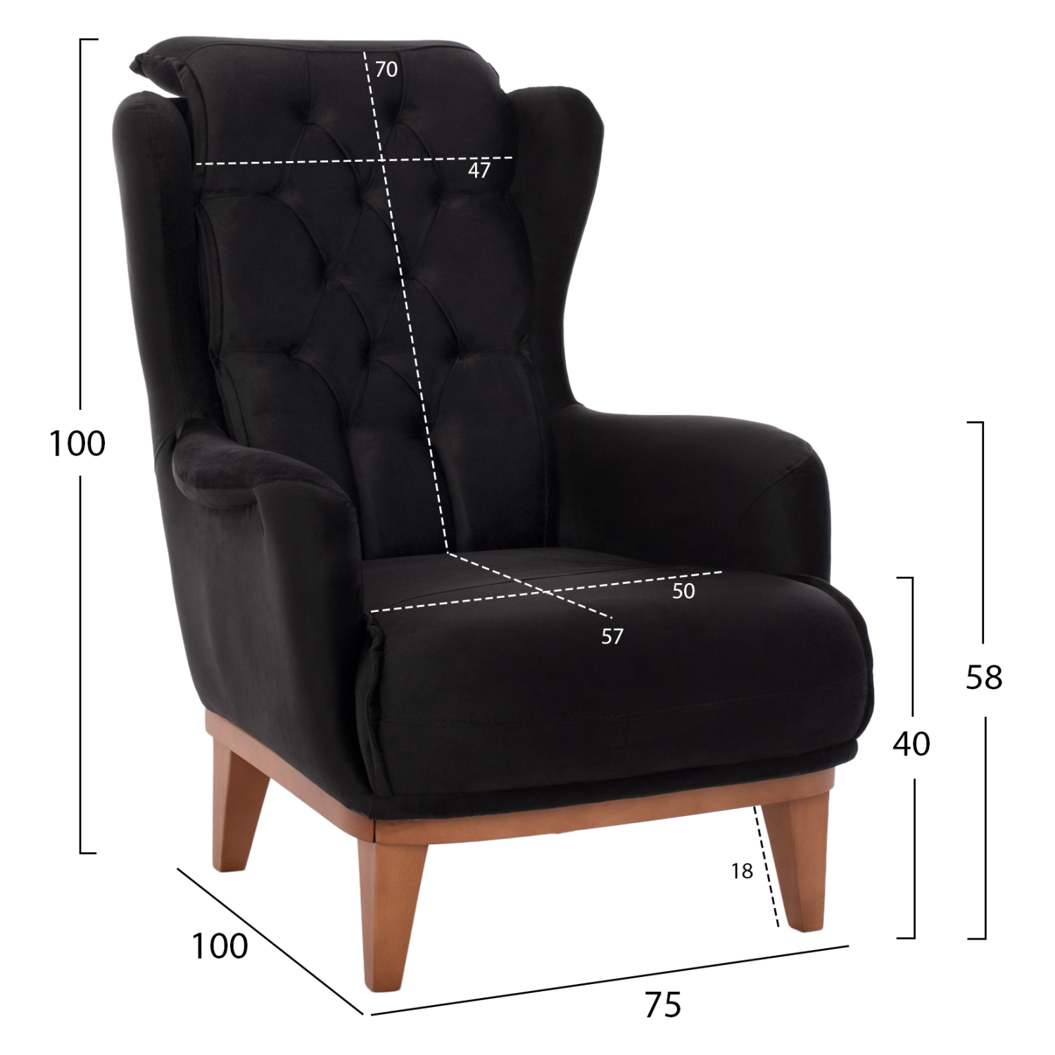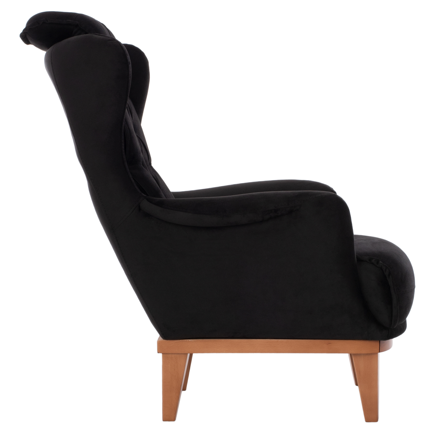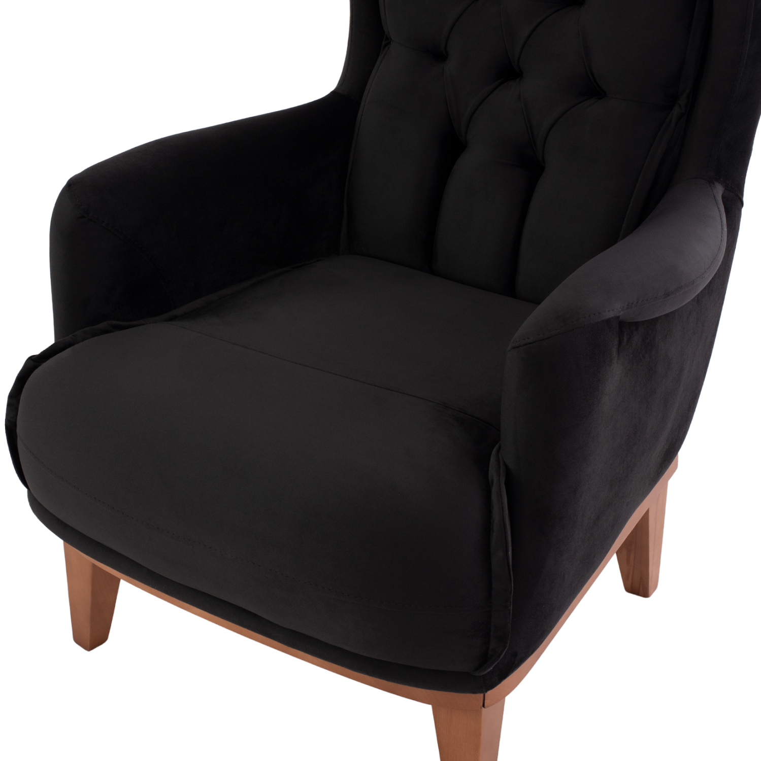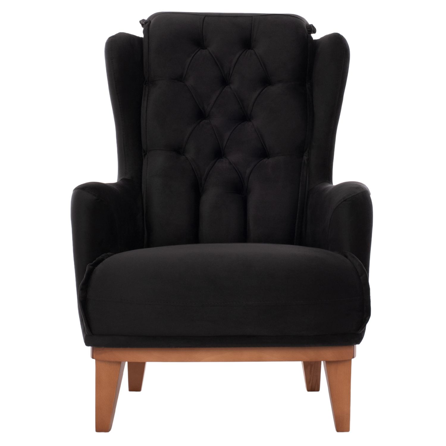Σας παρουσιάζουμε την μπερζέρα BENNINGTON, σε ΜΑΥΡΟ χρώμα με ξύλινα πόδια σε φυσική απόχρωση. Η επένδυση της πλάτης έχει γίνει με τεχνοτροπία καπιτονέ που προσδίδει ιδιαίτερη ομορφιά στην μπερζέρα σε συνδυασμό, φυσικά, με την βελούδινη επένδυση.