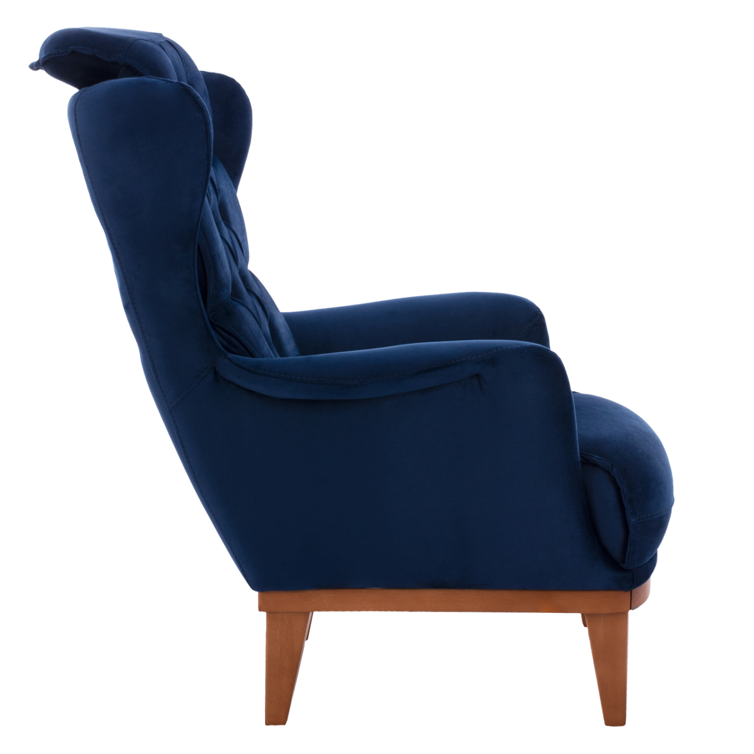 Σας παρουσιάζουμε την μπερζέρα BENNINGTON, σε έντονο ΜΠΛΕ χρώμα με ξύλινα πόδια σε φυσική απόχρωση. Η επένδυση της πλάτης έχει γίνει με τεχνοτροπία καπιτονέ που προσδίδει ιδιαίτερη ομορφιά στην μπερζέρα σε συνδυασμό, φυσικά, με το βελούδο που είναι το ύφασμα της επένδυσης.