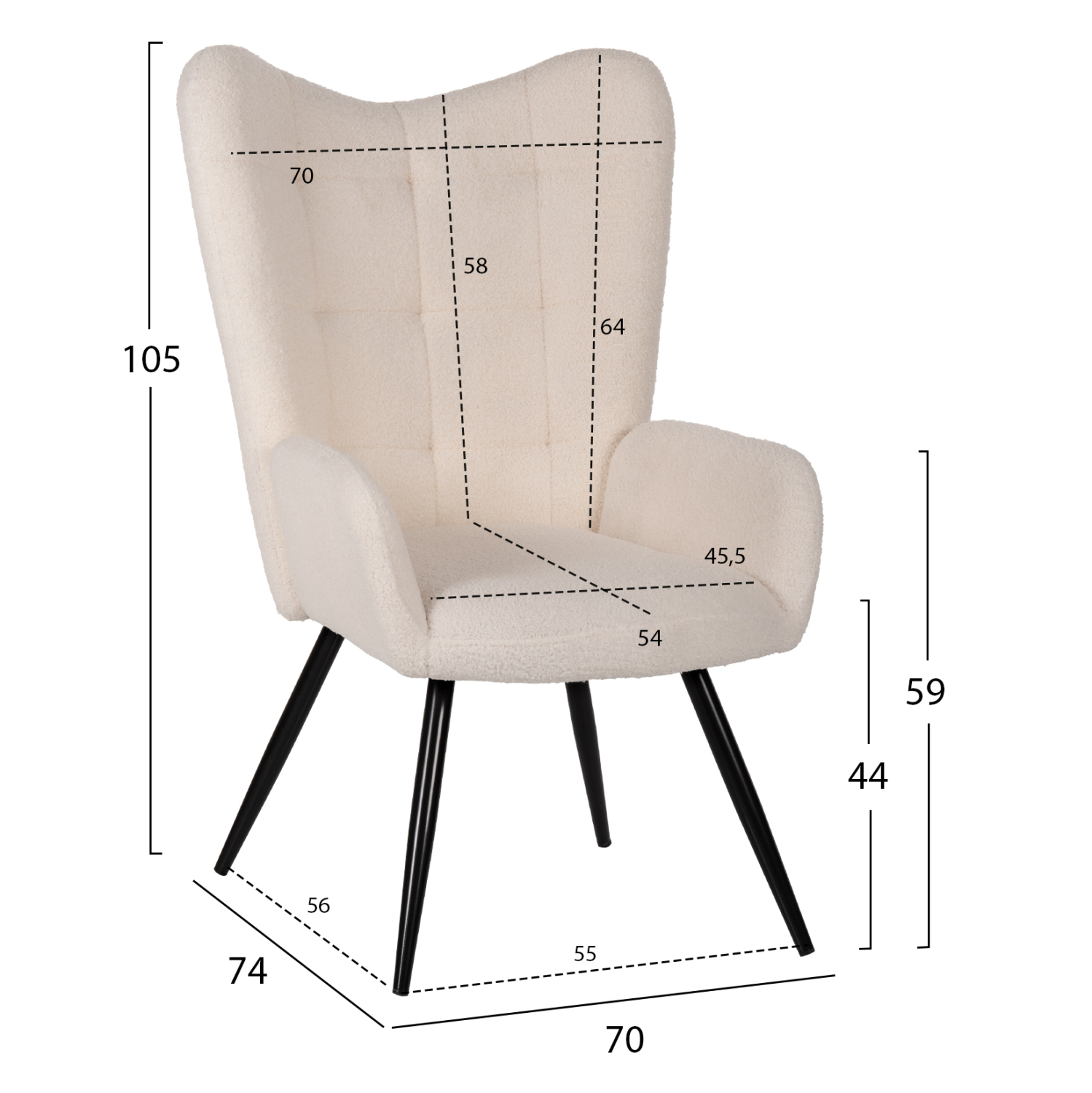 Ολόκληρη η επένδυση της μπερζέρας έχει γίνει με εξαιρετικής ποιότητας μπουκλέ ύφασμα, χαρίζοντας ελκυστική όψη και μια εκλεπτυσμένη γοητεία στην διακόσμηση του σαλονιού σας. Αυτό το ύφασμα είναι πολυεστερικό με προδιαγραφές 300gr/m2.