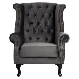 Αυτή είναι η μπερζέρα ΗΜ0053.10 σε ΓΚΡΙ χρώμα και ξύλινα πόδια σε μαύρο χρώμα. Το χαρακτηριστικό που κάνει αυτή την πολυθρόνα να ξεχωρίζει είναι ότι η τεχνοτροπία της είναι σε στυλ Chesterfield, πράγμα που δίνει την αίσθηση κύρους και πολυτέλειας οπουδήποτε κι αν χρησιμοποιηθεί. Το κύριο χαρακτηριστικό αυτού του στυλ, είναι η επένδυση με βελούδινο ύφασμα εξαιρετικής ποιότητας, το οποίο στην πλάτη είναι σε βαθιά καπιτονέ τεχνοτροπία, υπηρετώντας το στυλ Chesterfield.