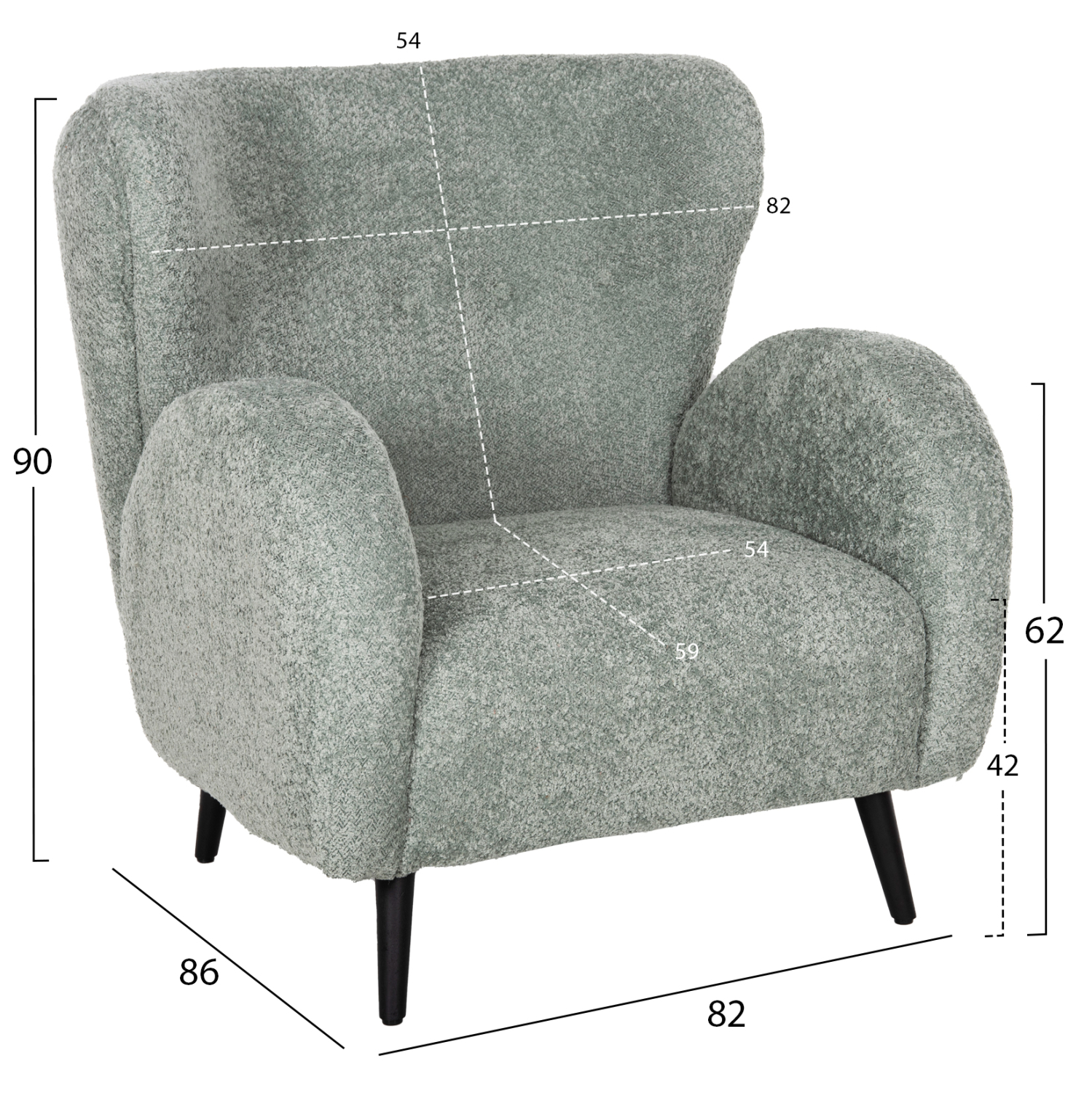 Ολόκληρη η επένδυση της μπερζέρας έχει γίνει με εξαιρετικής ποιότητας ΜΠΟΥΚΛΕ ύφασμα. Μπουκλέ λέγεται οποιοδήποτε ύφασμα που έχει κόμπο-μπούκλα στην ύφανσή του. Κατασκευάζεται από σχεδόν όλες τις πρώτες ύλες (αν και συνήθως είναι συνθετικό) με ειδικές κλωστές με κόμπους ή πολύ στριμμένα νήματα, έτσι ώστε να έχει σγουρή επιφάνεια. Δεν τσαλακώνει και μπορεί να είναι μονόχρωμο, μελανζέ ,καρώ ή τουιντ.