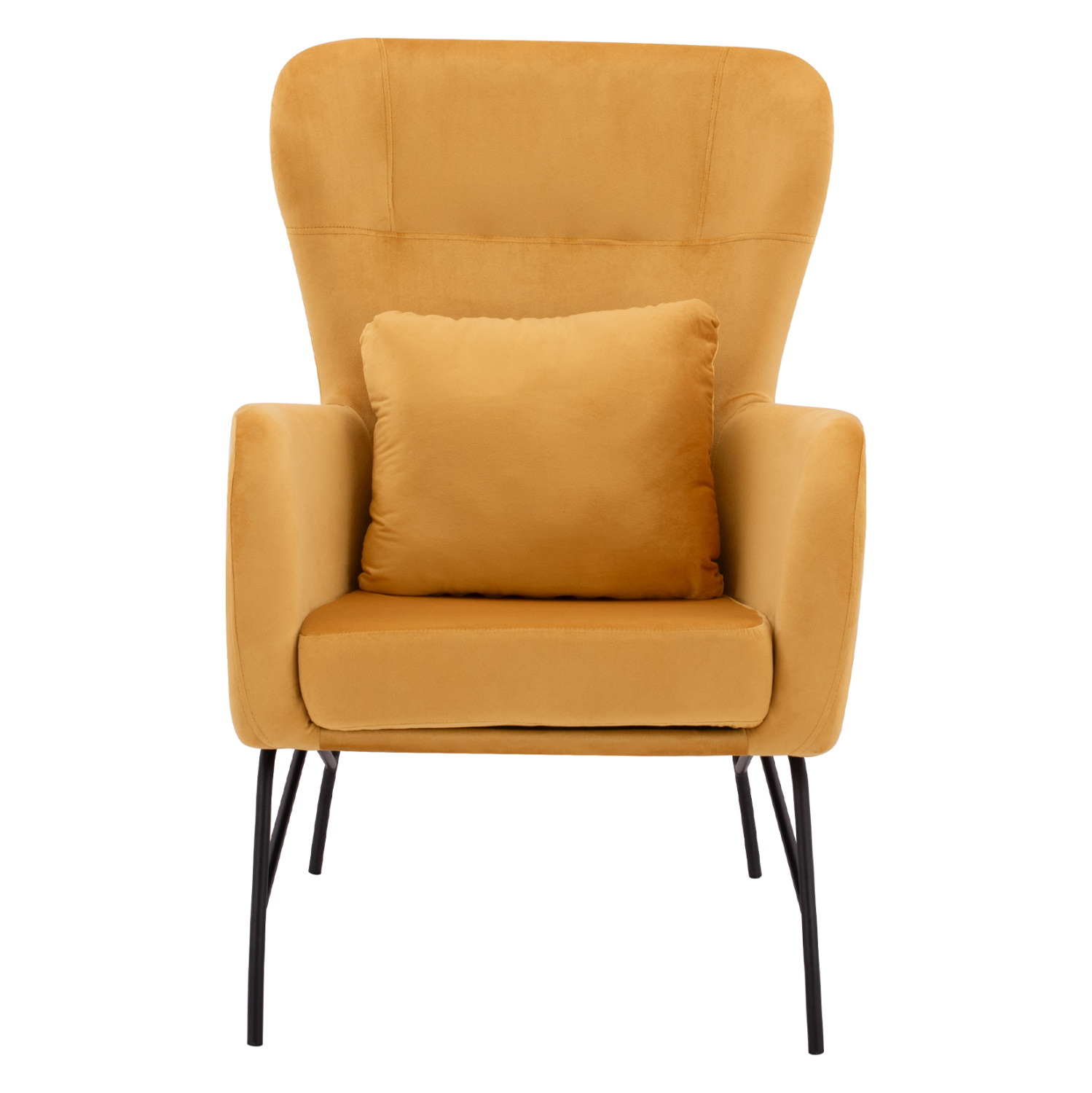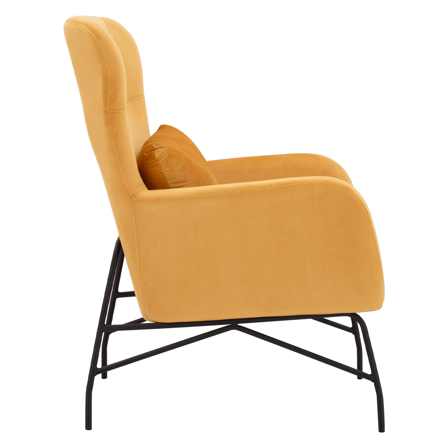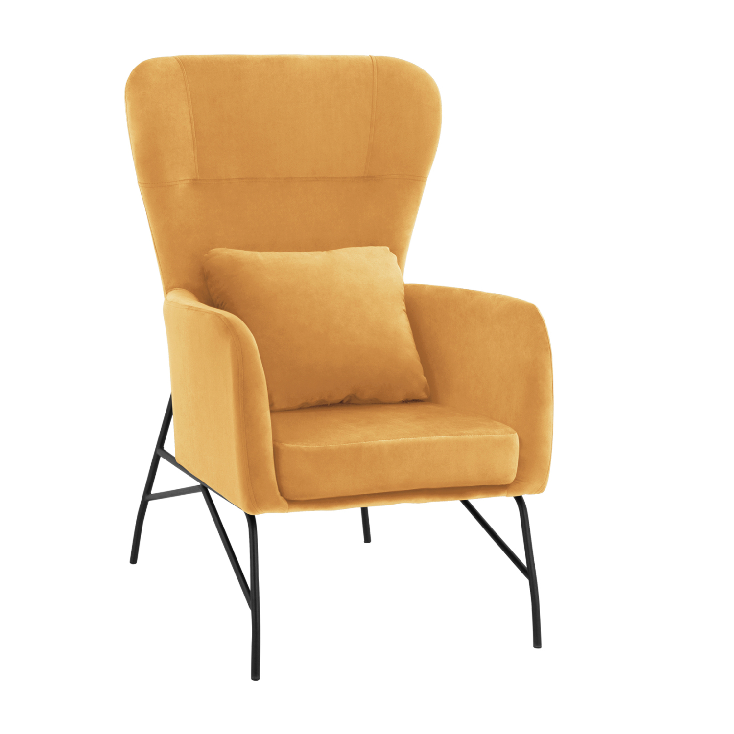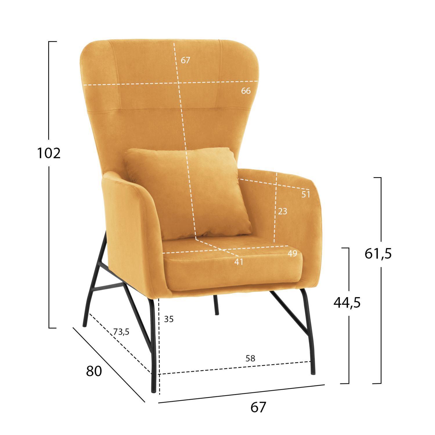 Σας παρουσιάζουμε την μπερζέρα ΗΜ8721.09, σε ιδιαίτερο ΧΡΥΣΟ χρώμα με μεταλλικά πόδια σε μαύρο χρώμα. Η επένδυση ολόκληρης της μπερζέρας έχει γίνει με λαμπερό βελούδο ενώ και το εξτρά μαξιλάρι μέσης, είναι επενδυμένο με το ίδιο ύφασμα. Πρόκειται για μια λιτή αλλά ταυτόχρονα και επιβλητική κατασκευή που θα αποτελέσει το κέντρο του ενδιαφέροντος σε όποιο σαλόνι κι αν τοποθετηθεί.